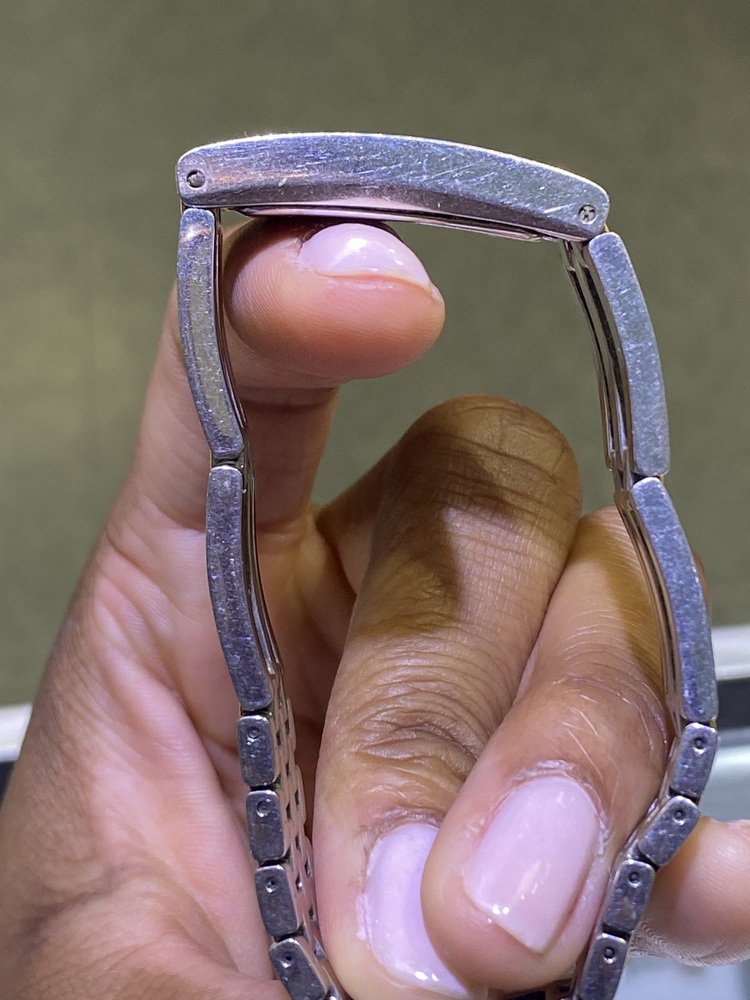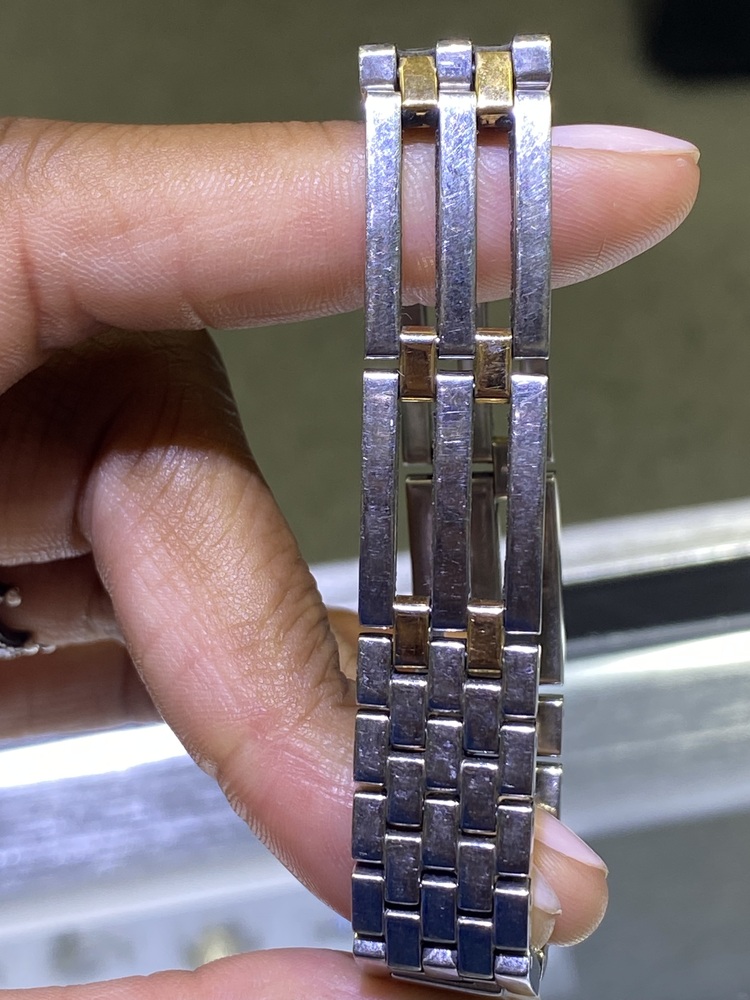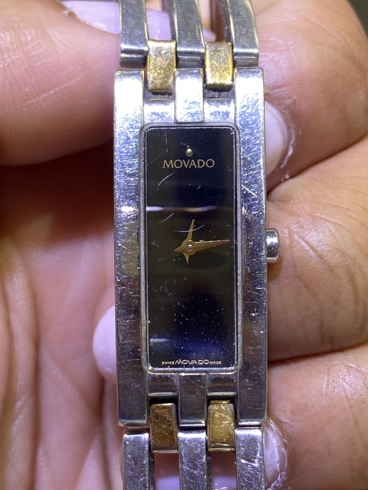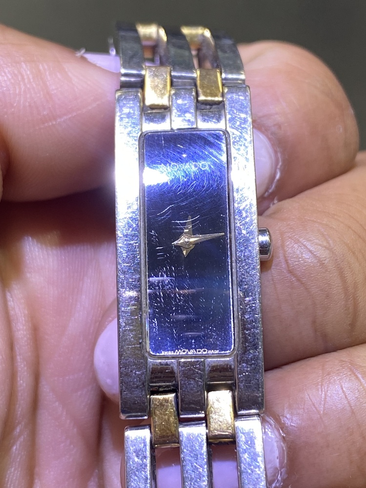 This watch is preowned and keeping time. There are some scratches on the crystal. SEE PICTURES.