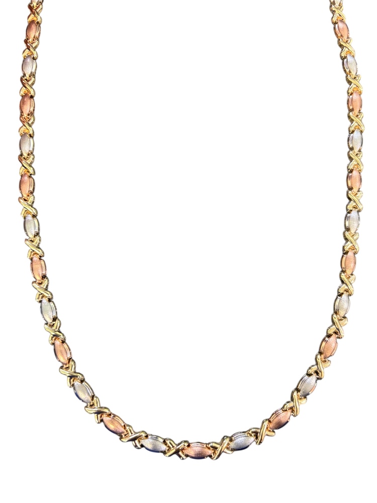 10kt Tri-Color 16" 5.5mm "XOXO" Necklace
