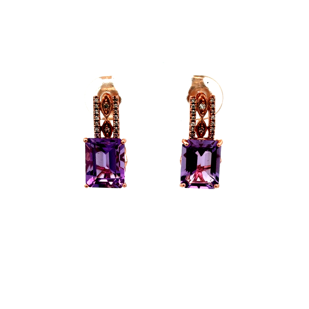 14kt Rose Gold .15ct tw Diamond & Amethyst Dangling Earrings