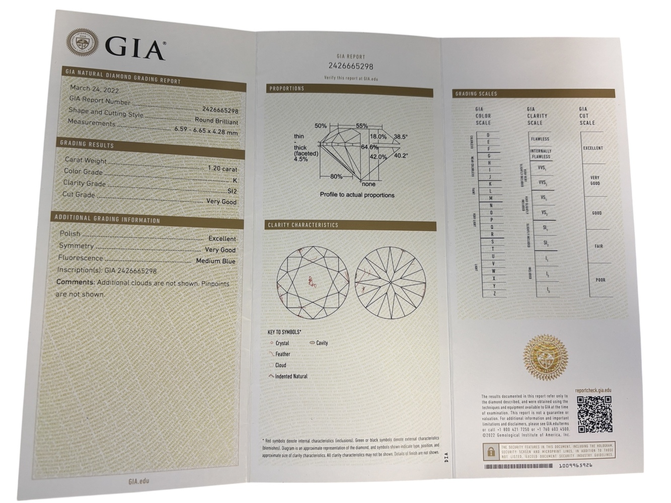 Center Stone: 1.20ct Round Diamond SI2 K GIA Certification 2426665298 (Can Be Purchased Separately 1341539)