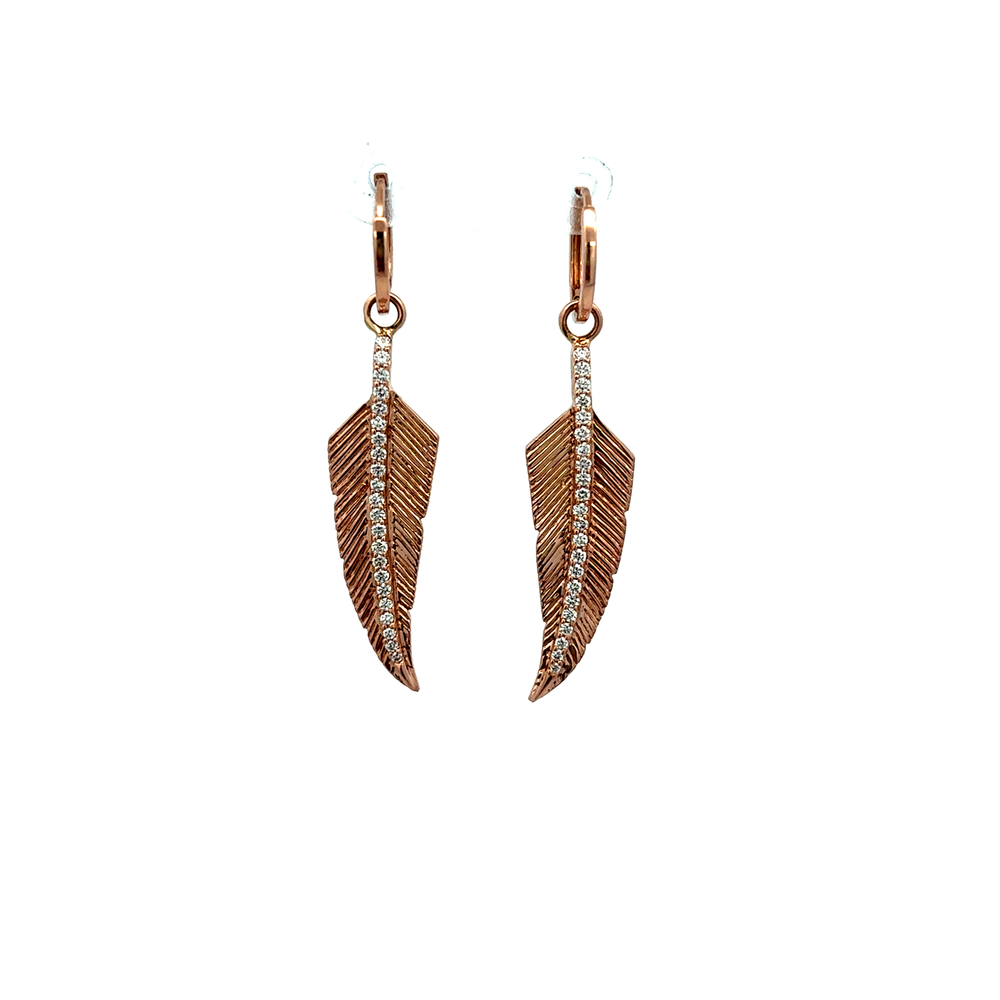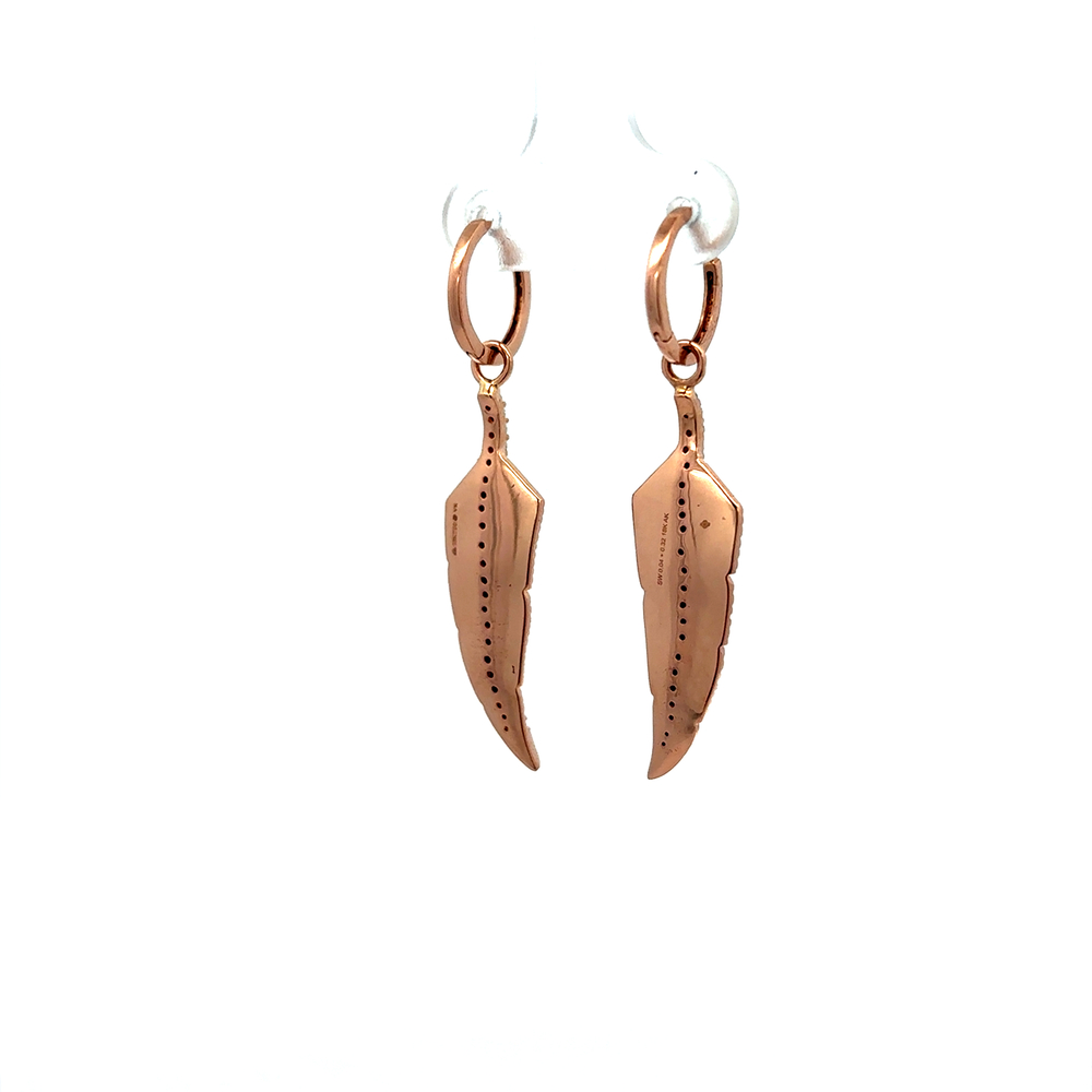 18kt Rose Gold .36ct tw Diamond Feather Dangling Earrings