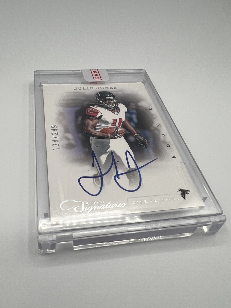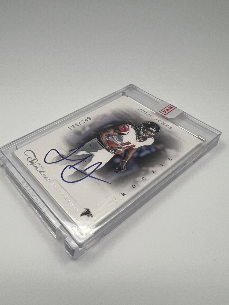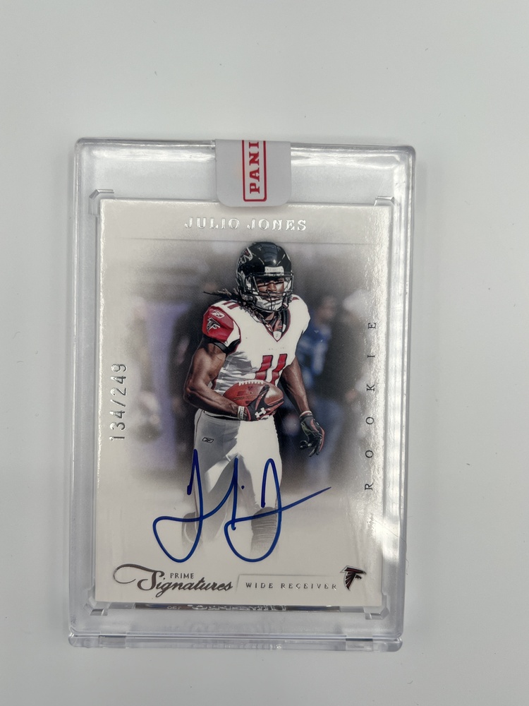 Up for sale is a 2012 Panini Prominence Autograph card of Julio Jones, one of the most dominant wide receivers of his era. This card is serial numbered #134/249 and features an on-card autograph guaranteed authentic by Panini.