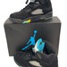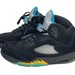 The Air Jordan 5 Retro ‘Aqua’ showcases a distinctive color scheme that recalls an AJ5 PE made for Chris Paul during his time with the New Orleans Hornets. The legacy silhouette makes use of a black nubuck upper with translucent quarter-panel netting for improved breathability. A bright teal Jumpman decorates the back heel and silver reflective tongue. Anchoring the sneaker is a black polyurethane midsole, featuring speckled yellow shark-tooth detailing and visible Air-sole cushioning in the heel. Finished in a vibrant turquoise hue, a translucent rubber outsole yields durable traction.