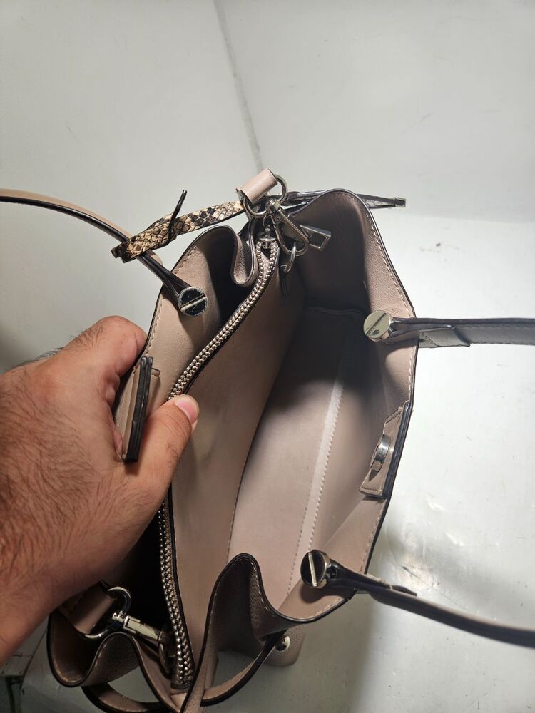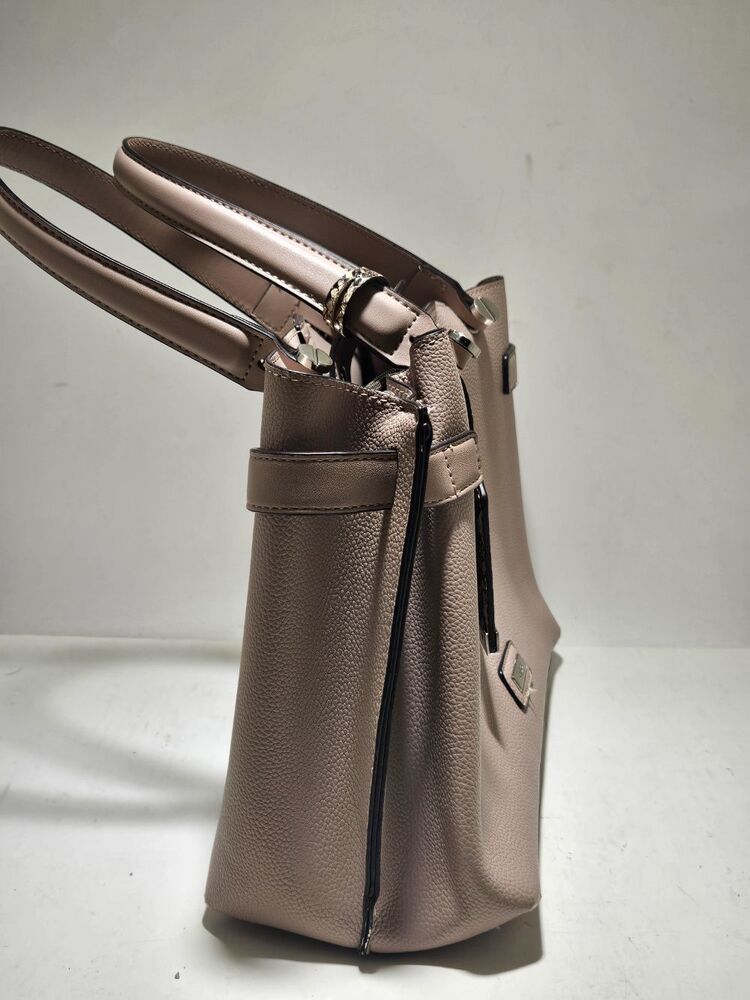Features: Dual top handles, optional crossbody strap, interior pockets