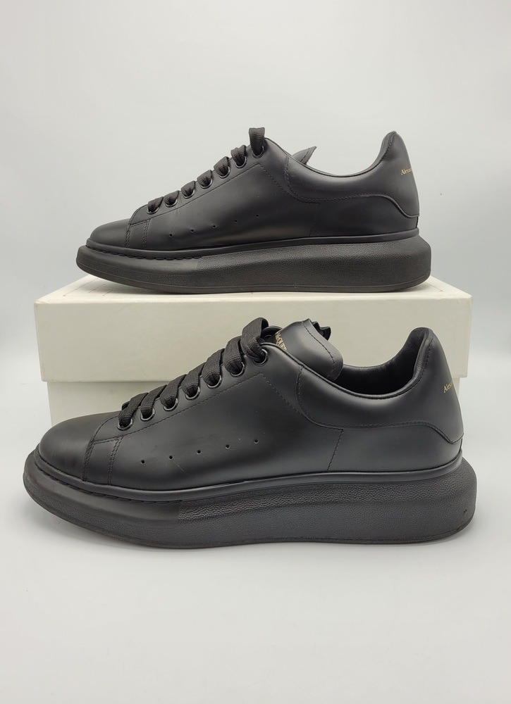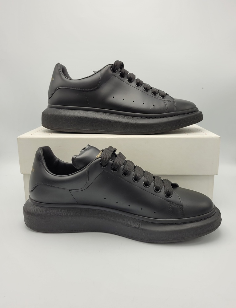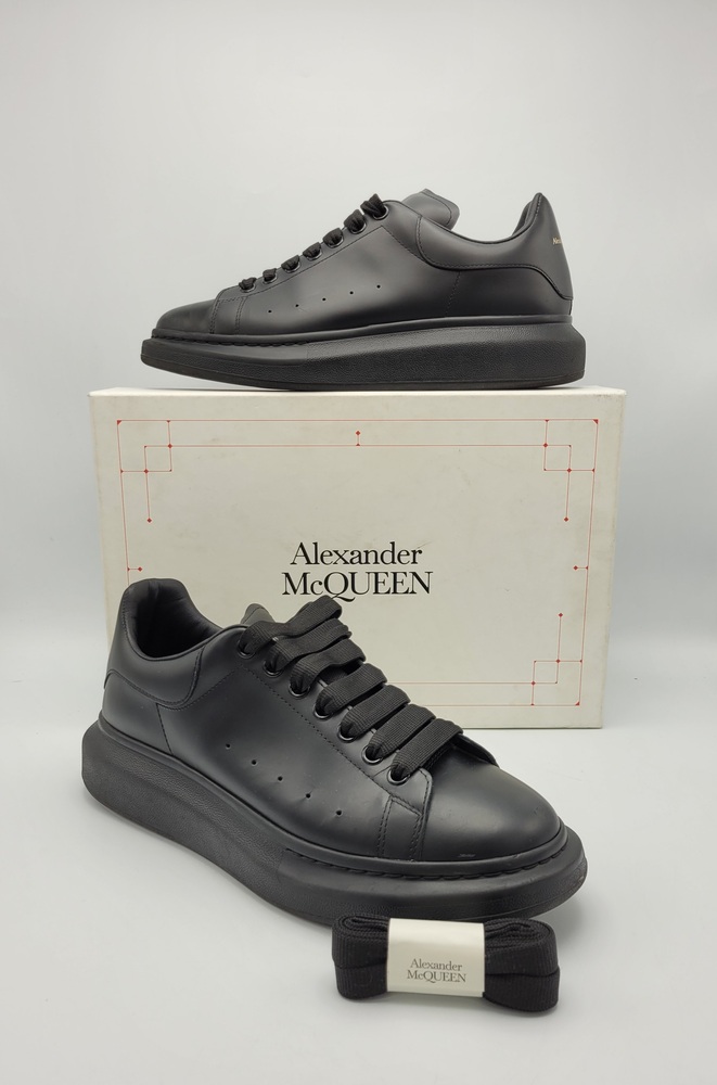 Step into luxury with these iconic Alexander McQueen Oversized Sneakers! All-black everything — smooth leather upper, chunky sole, and bold silhouette that gives any outfit instant edge. Minimalist but statement-making, just how McQueen intended.