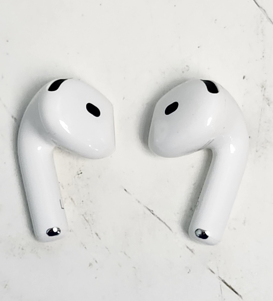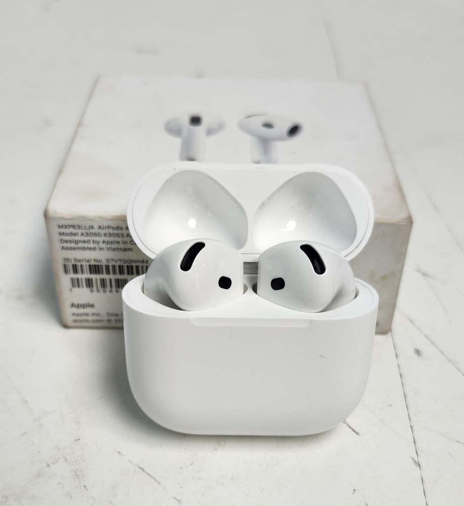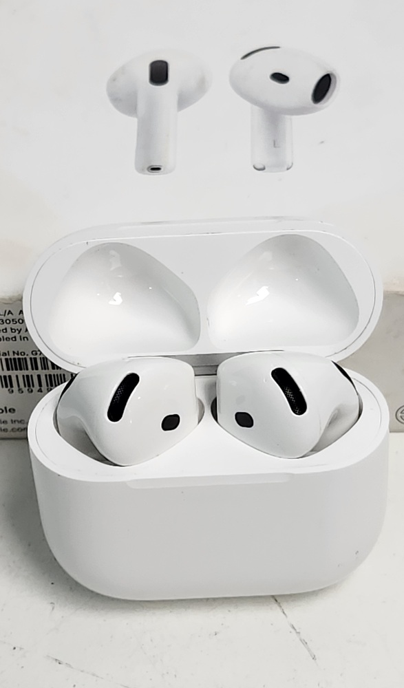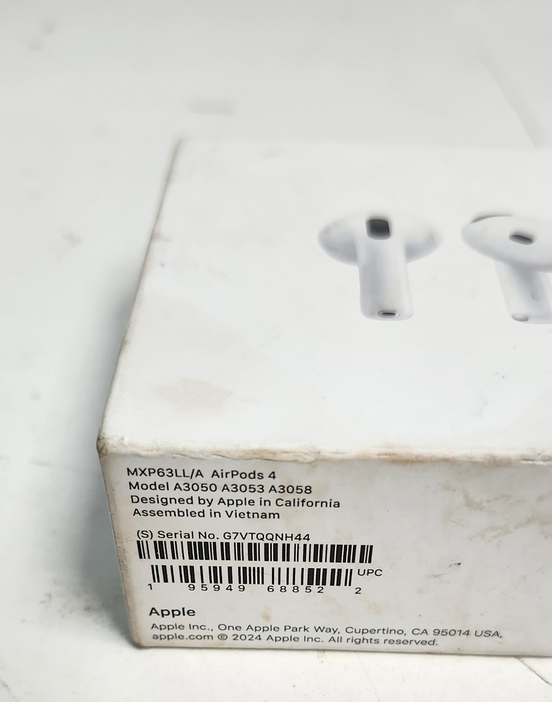 Apple AirPods 4 with MagSafe charging case. Tested and working. Light wear from normal use, box has some marks (see photos). Connects easily to iPhone, iPad, or other Bluetooth devices.