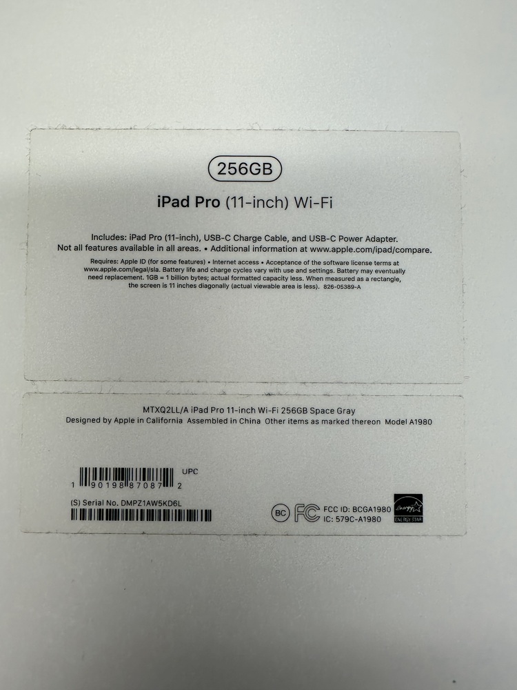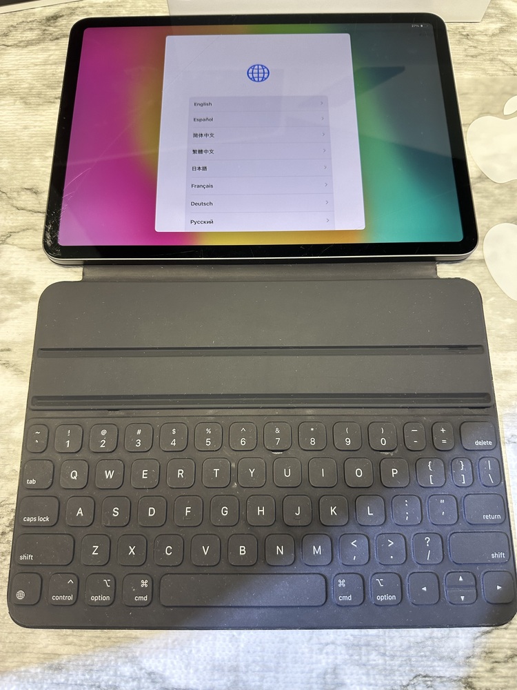 Apple iPad Pro 11" 1st Generation 256GB Wifi Space Gray A1980 CRACKED SCREEN with pen and keyboard