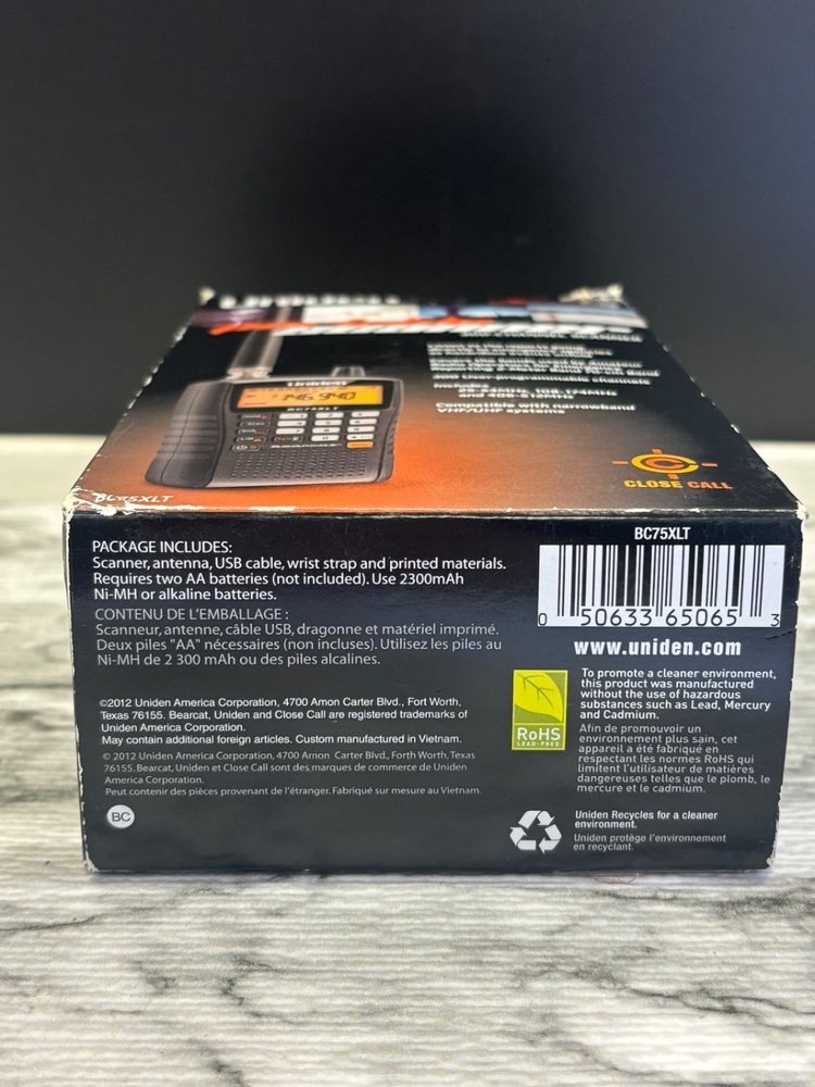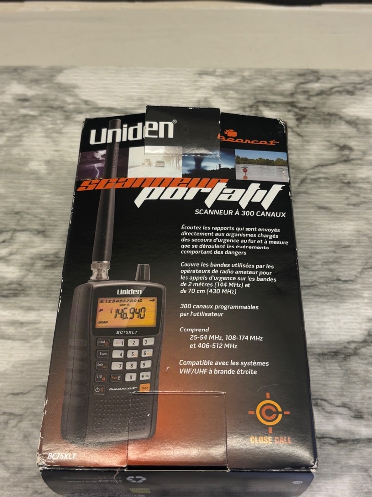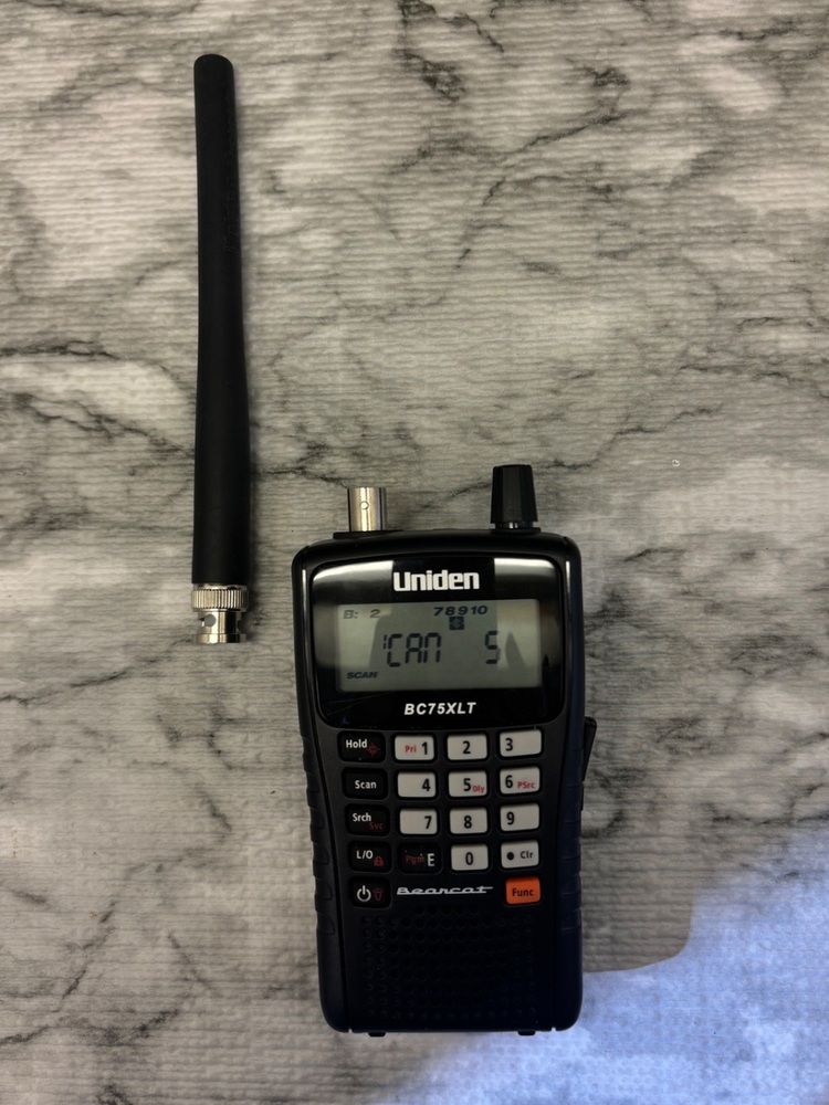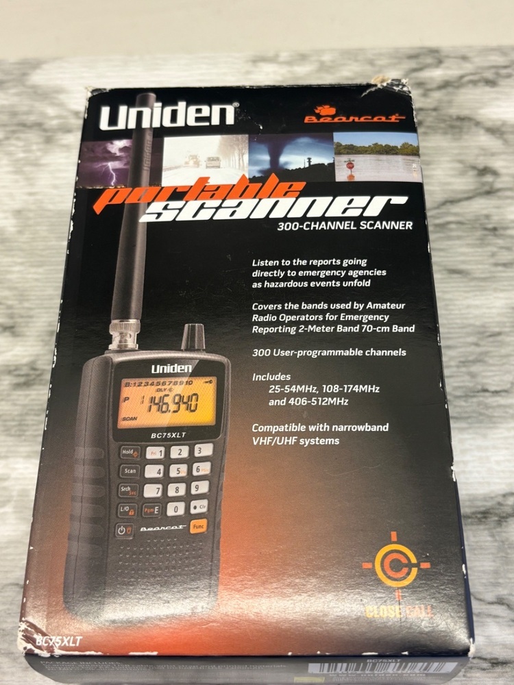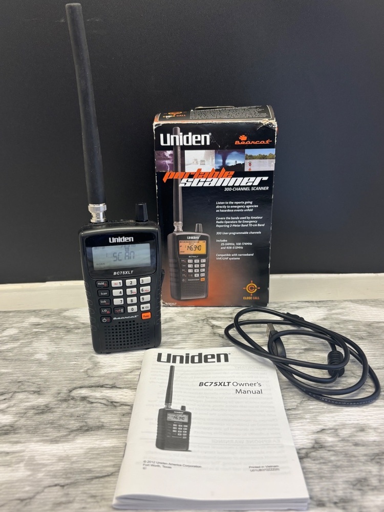 The Uniden BC75XLT is a compact handheld scanner that works best during severe weather conditions or disasters. It covers the bands used for emergency reporting including NOAA weather, Aviation, Marine, Railroad, NASCAR and non-digital police, fire, and ambulance emergencies.