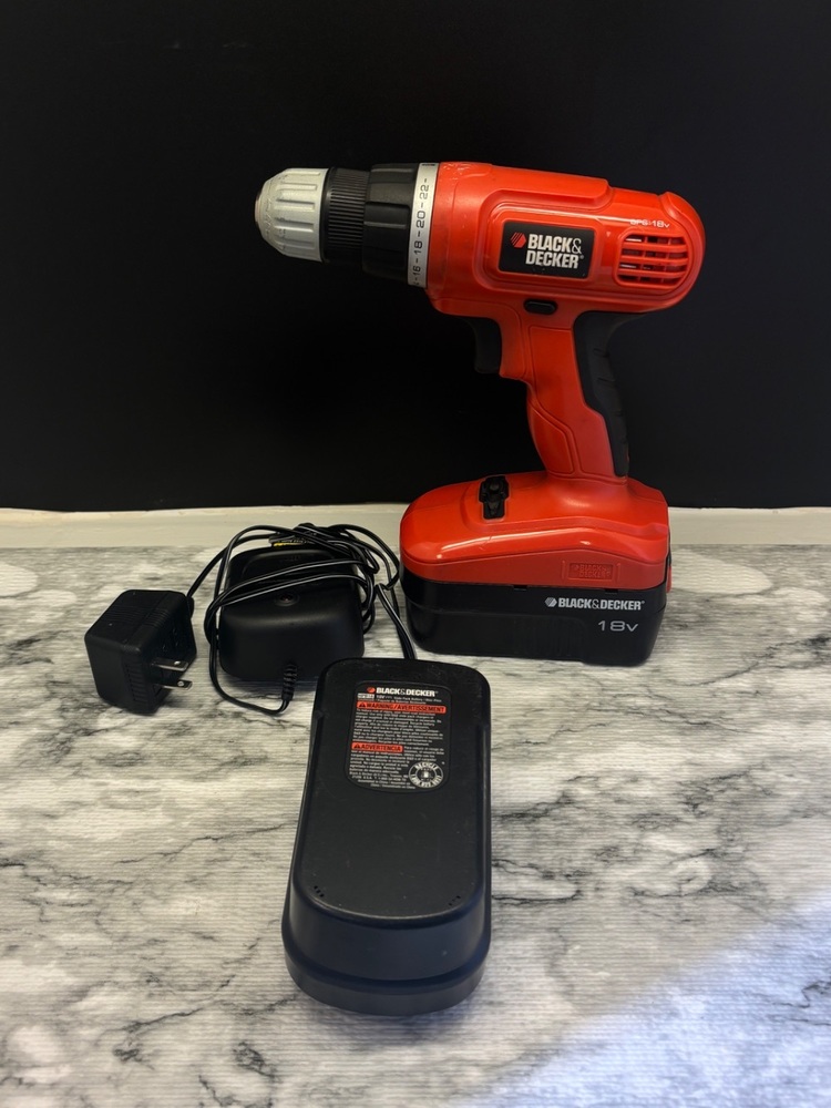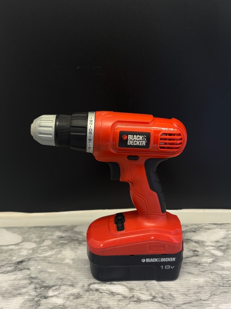 The Black & Decker GCO1800 Drill/Driver is equipped with an 18V motor, providing substantial torque and speed. This cordless tool utilizes a keyless chuck for effortless bit changes, and 24 position clutch for precision control. The kit comes with 2 rechargeable Ni-Cad batteries and a charger, ensuring continuous power supply.