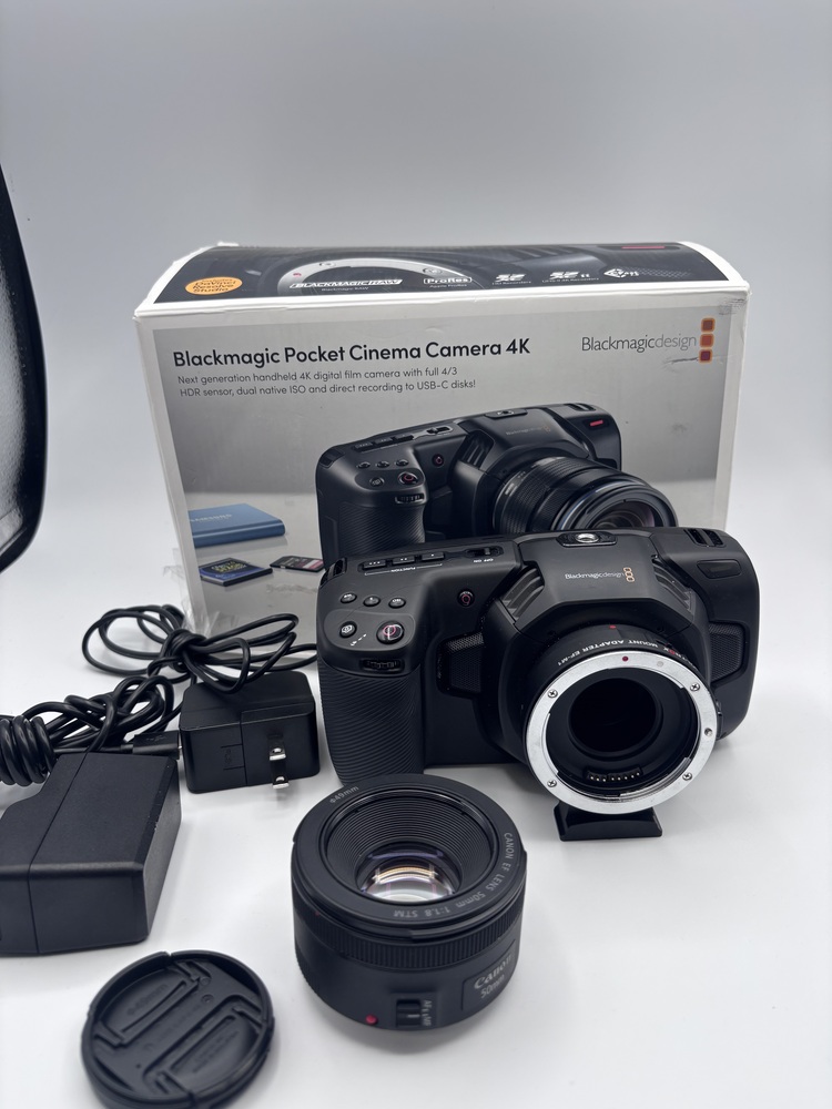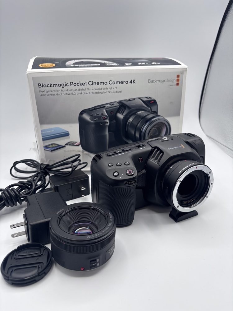 Take your filmmaking to the next level with the Blackmagic Pocket Cinema Camera 4K (BMPCC 4K)—a powerhouse known for its cinematic image quality, professional controls, and compact design. This unit is pre-owned but in amazing condition, carefully maintained and fully functional.