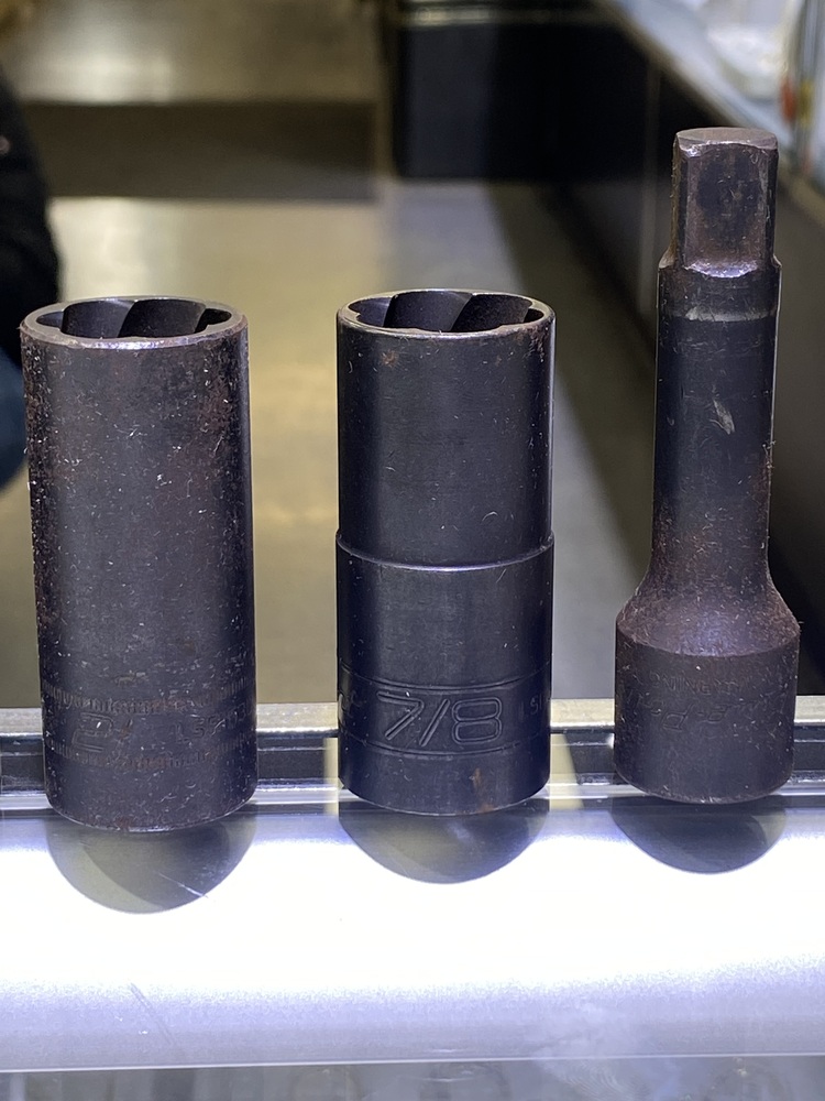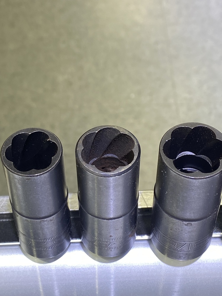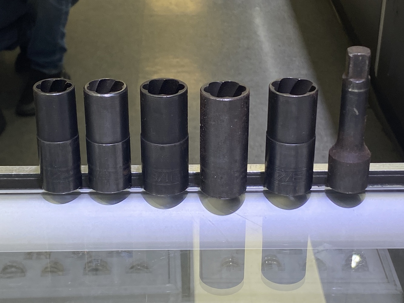 6-point Flank Drive wrenching system at one end and a six-fluted twist socket for removal of damaged wheel lugs at the other end