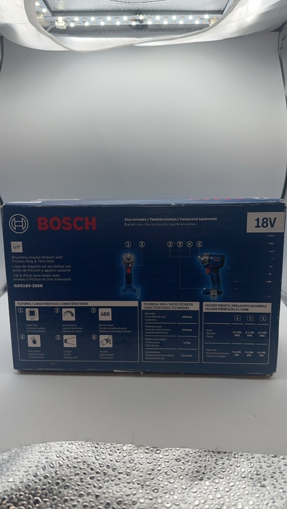 The Bosch GDS18V-350N Impact Wrench provides a powerful, high-torque performance with its brushless motor and compact design. Featuring electronic motor and cell protection, this tool offers enhanced durability. Its 1/2-inch square drive is suitable for a range of fixtures.
