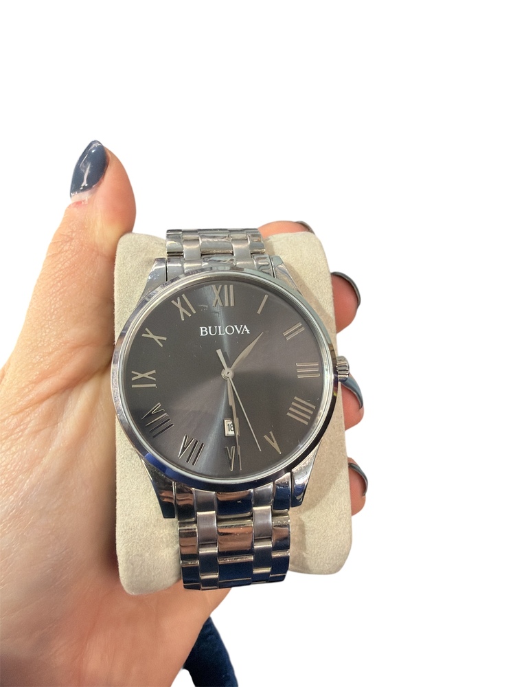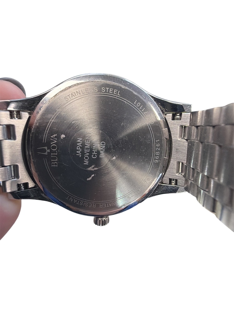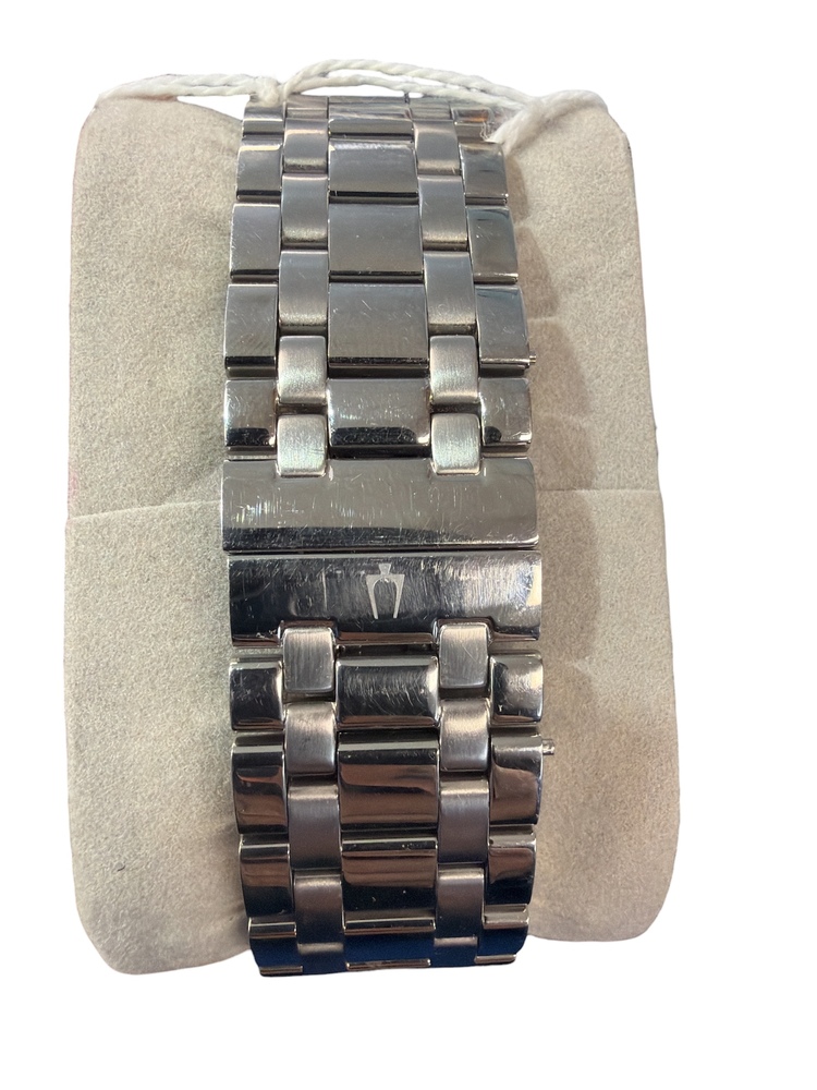 | The Bulova 96B261 Wristwatch is a sleek, luxurious timepiece, boasting an impressive stainless steel built. It features quartz movement, blue dial, a date function, silver tone hands, and hour indicators, promising precision and style. Resistant to water up to 30 meters. Ideal for professional and formal wear. |