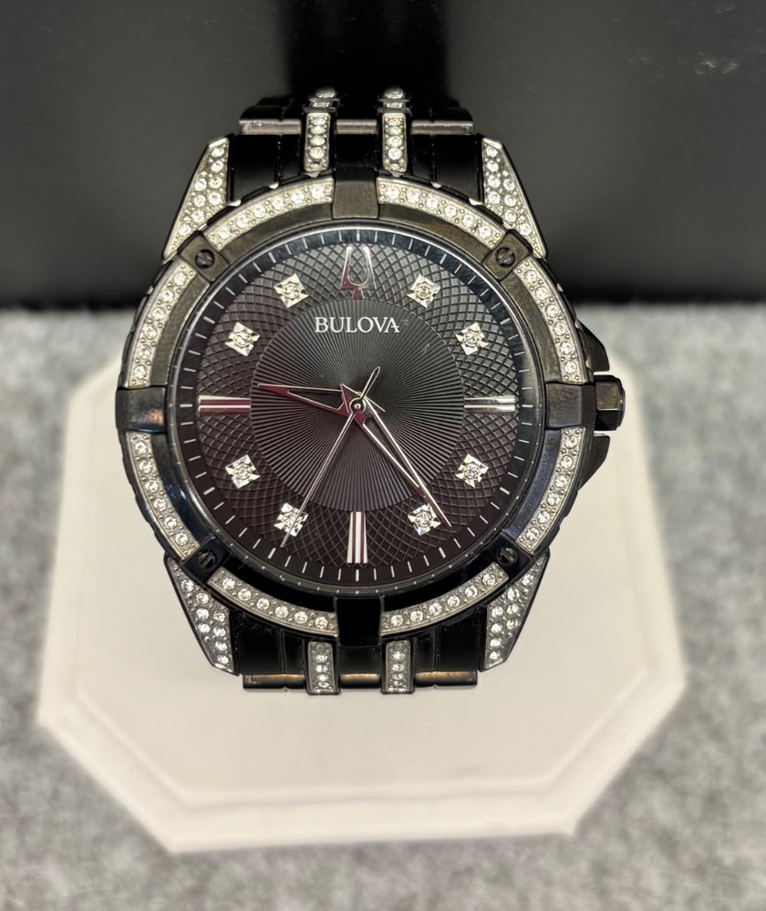 Bulova Crystal Men's Quartz Cystals Stainless Steel Black Watch 42MM 98K109