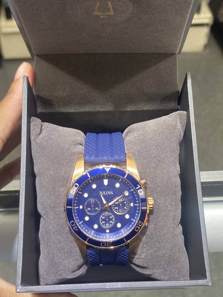 This Classic collection watch from Bulova features a 6-hand chronograph function and comfortable silicone strap. Style#98A299