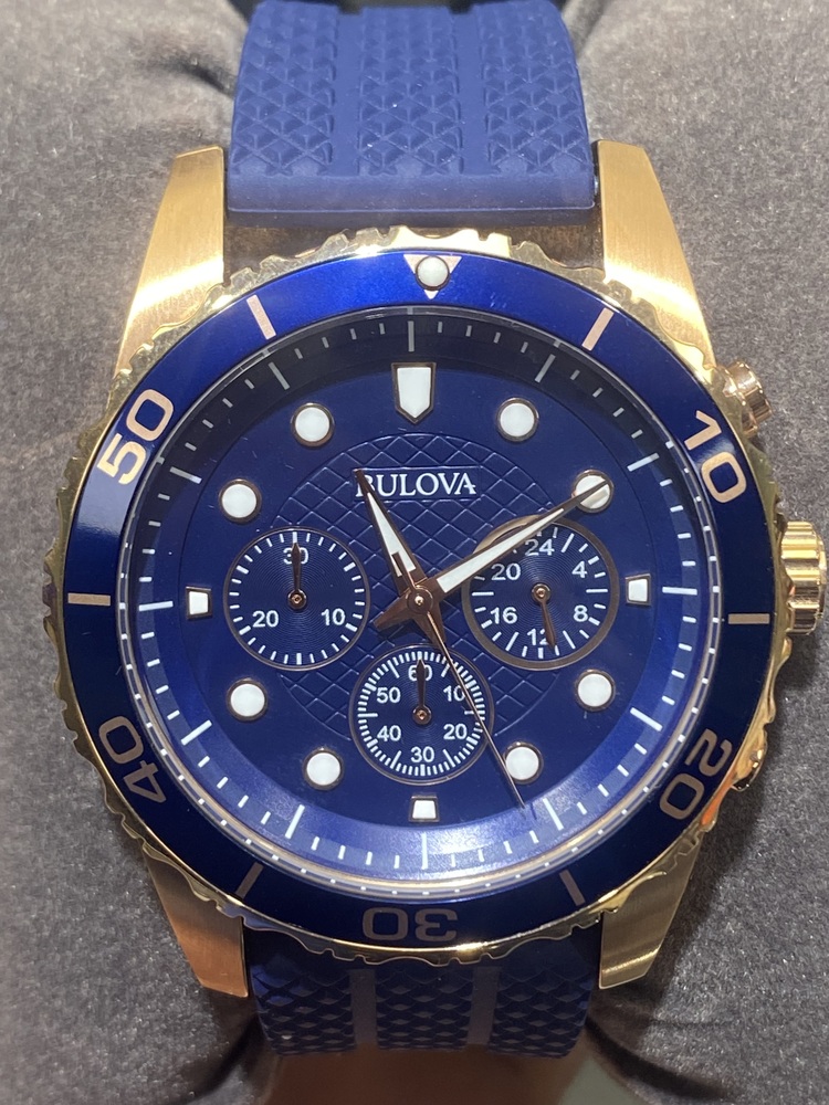 Bulova Men's Chronograph Classic Navy Silicone Strap Watch 43mm (98A299)