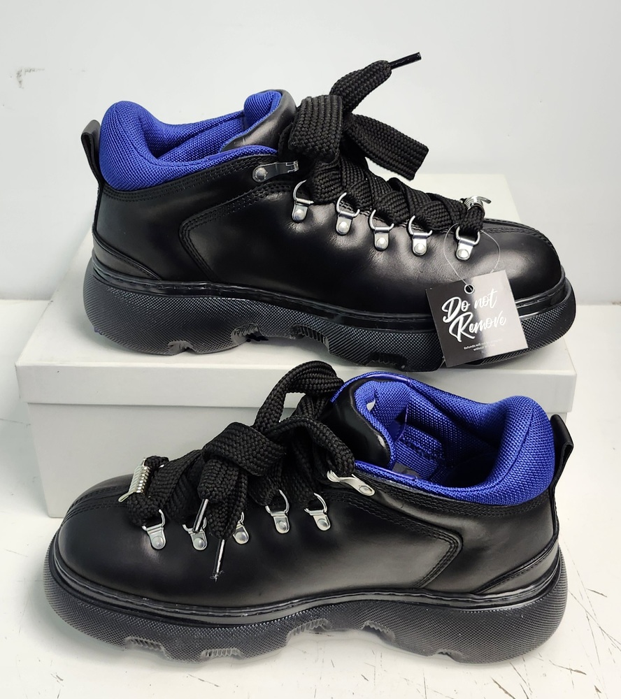 Chunky hiking-style design with durable leather uppers, rope laces, and Burberry branding on the outsoles. Very clean condition, No major flaws. Includes original box and Burberry dust bags.