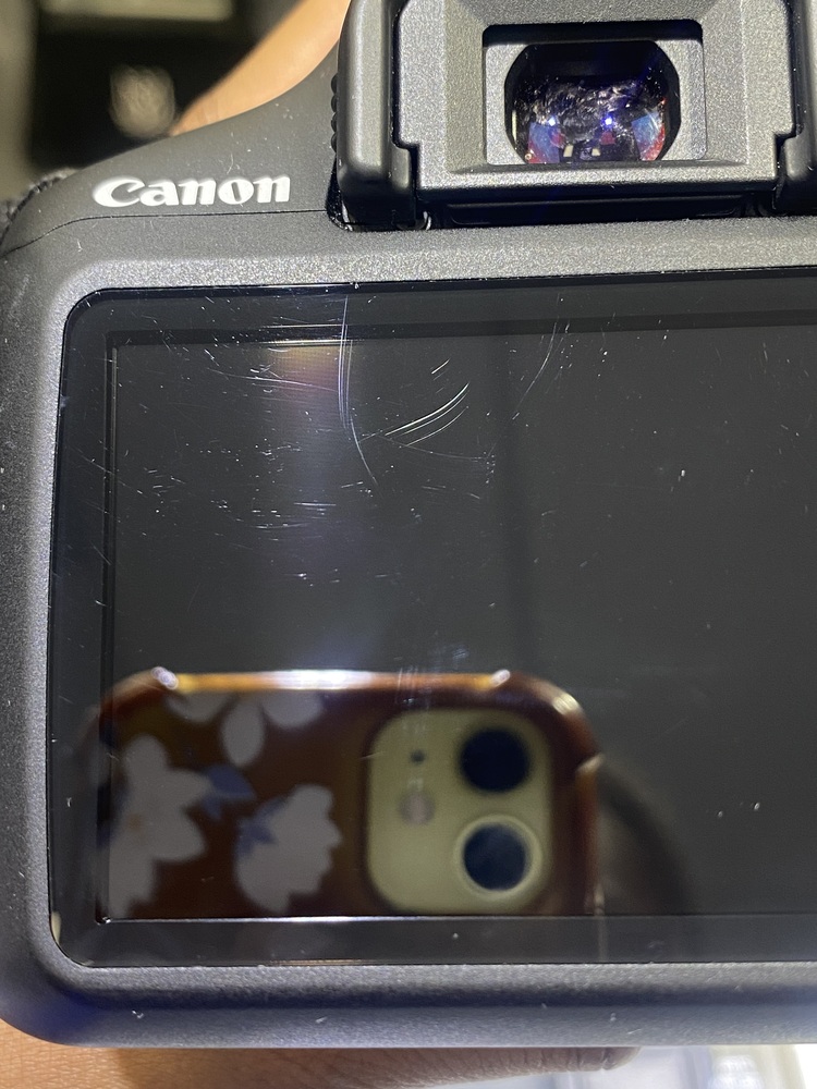 This camera is preowned in great condition. The lens does not have a cover and it comes with one battery no charger. It does not have an SD card. There are some light scratches on the screen. SEE PICTURES.