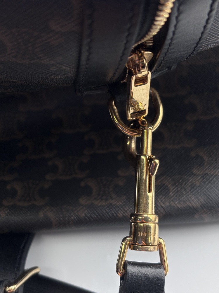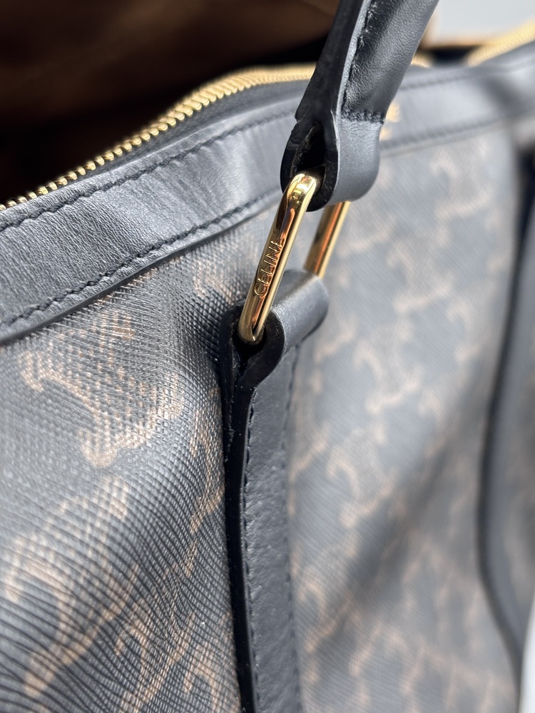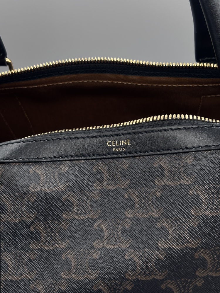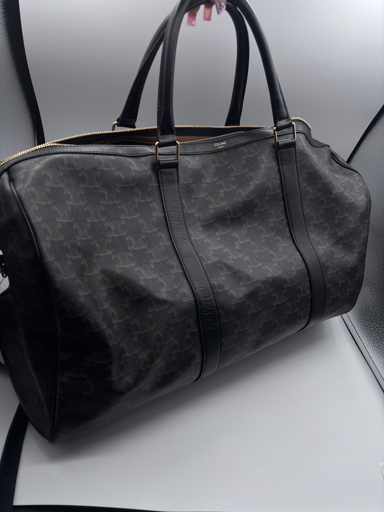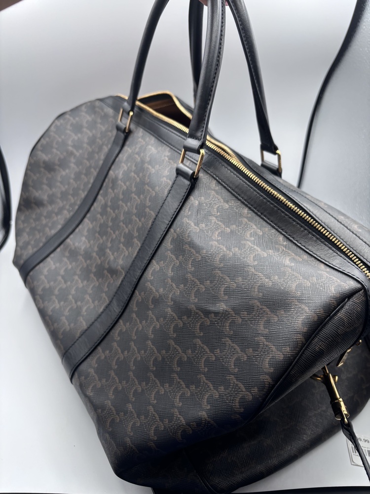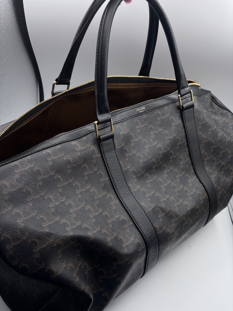 Upgrade your travel style with this stunning Celine Large Travel Bag, crafted in the iconic Triomphe Canvas with luxurious calfskin leather accents. This piece blends timeless elegance with practical functionality perfect for weekend getaways or elevated everyday use.