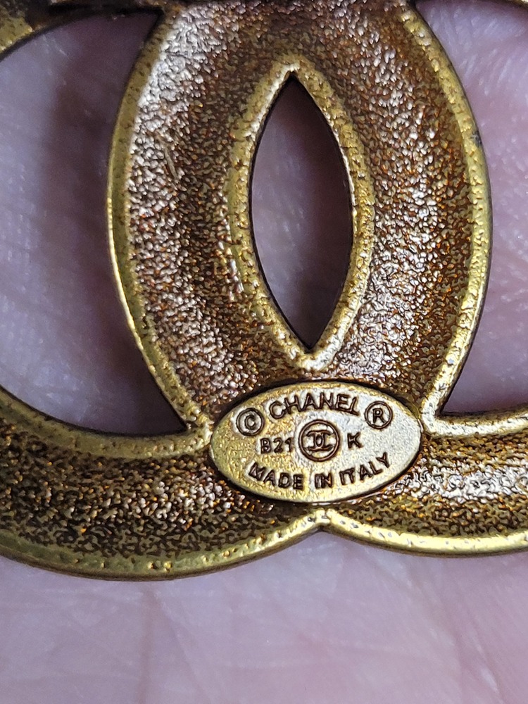 This stunning CHANEL brooch features the iconic interlocking CC logo in an elegant antique gold tone with a detailed woven texture. Crafted in Italy, this piece is from the B21 collection and showcases the timeless sophistication CHANEL is known for. The pin closure on the back ensures secure wear, making it the perfect accessory to elevate jackets, scarves, or handbags with a touch of luxury.