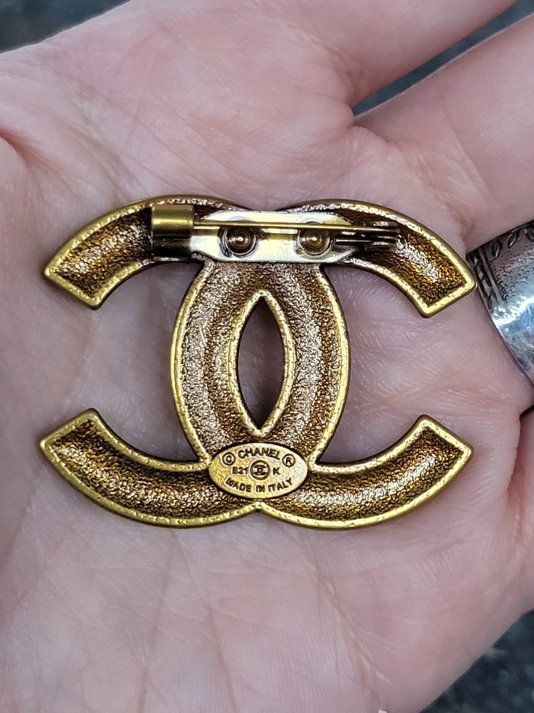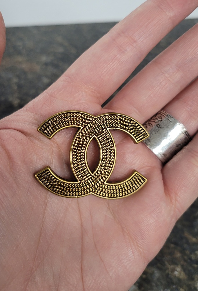 CHANEL Gold-Tone CC Logo Brooch – Textured Woven Design (B21 Collection) | Sterling & Knight Jewelry & Pawn