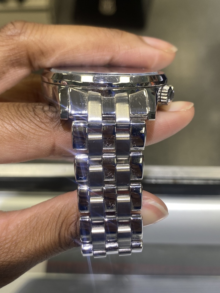 This watch is in good running condition. There are a few light scratches on the crystal and on the stainless steel.