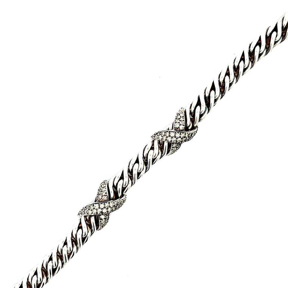 Style: Double X Diamond Station Wheat Link Bracelet