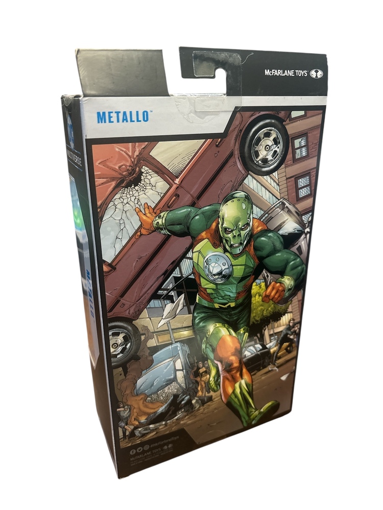 - 7-inch action figure of Metallo, the powerful DC villain and cyborg with a heart of kryptonite, known for his battles against Superman.