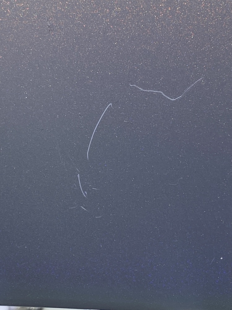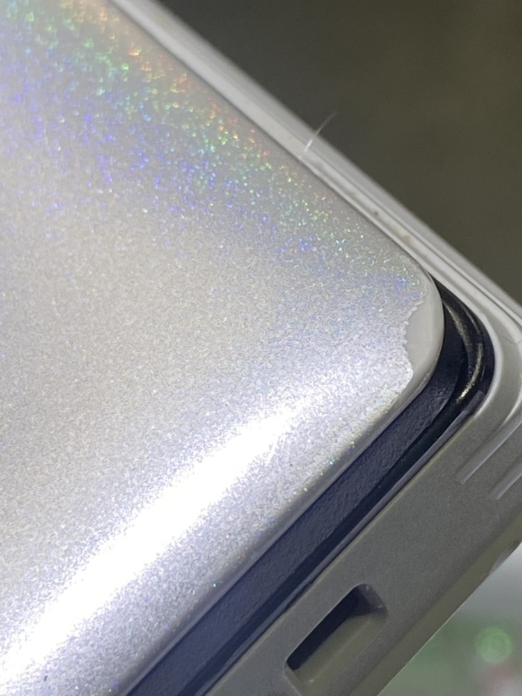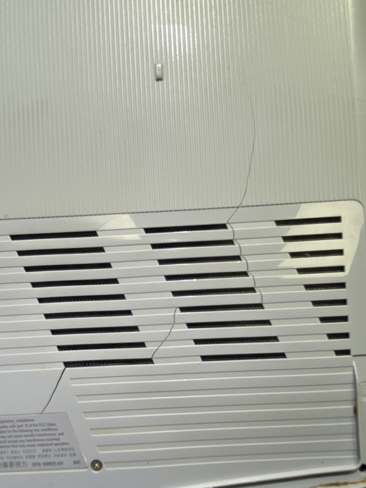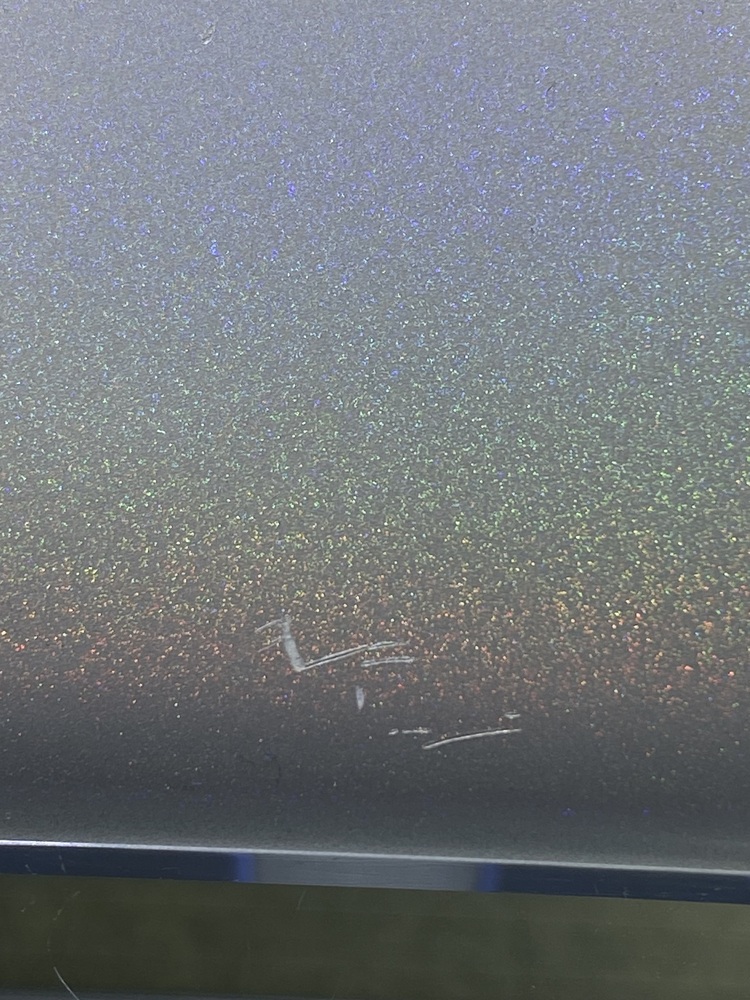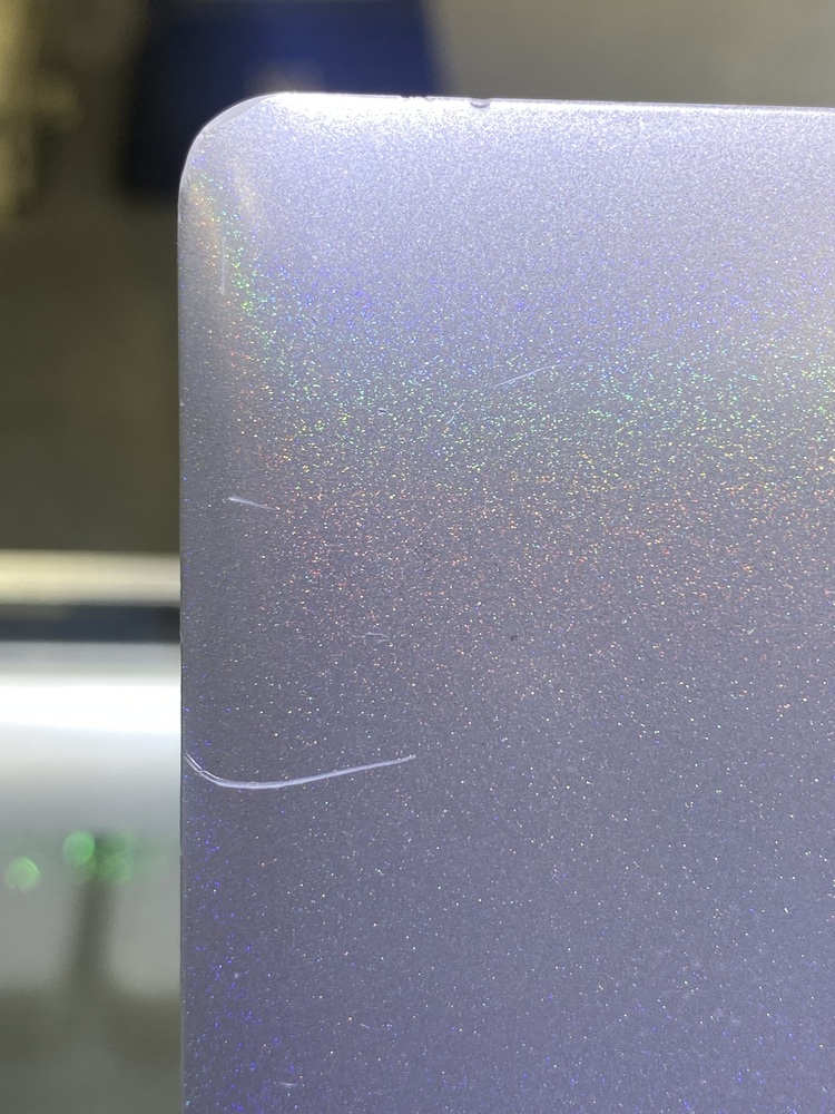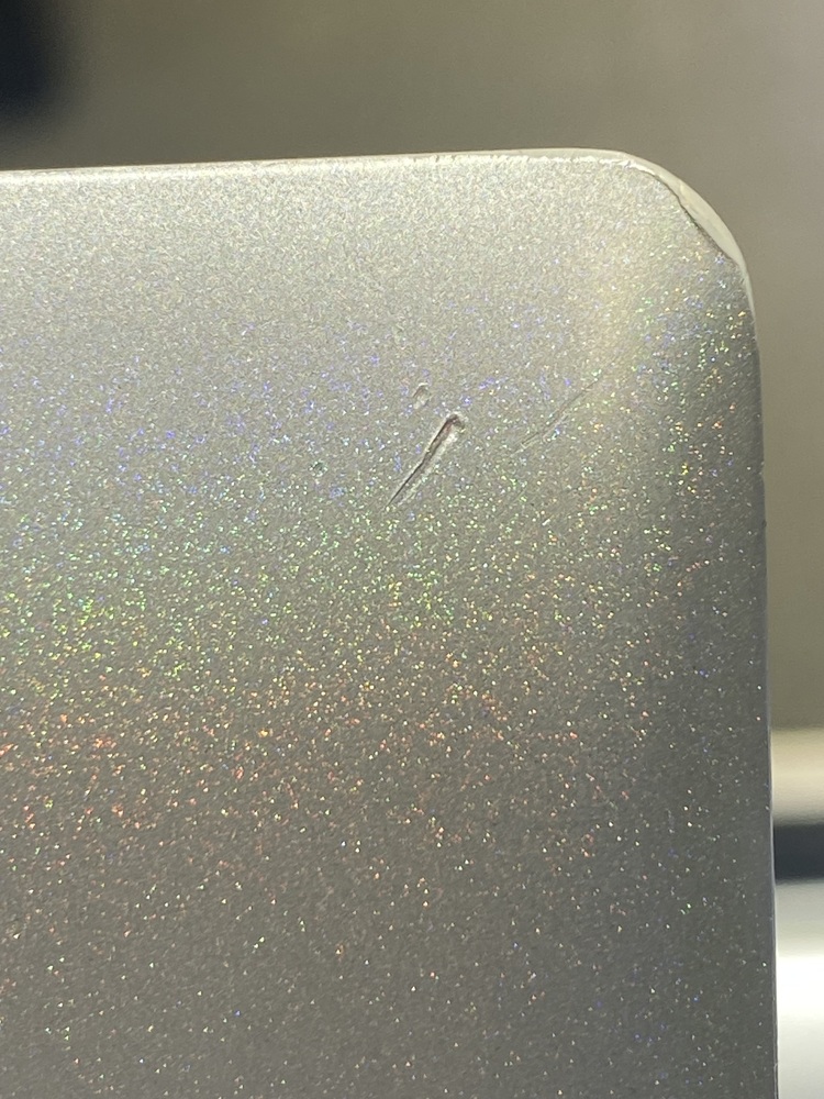 *It has some sratches on the back and the paint on the corners is fading. There are a few dents on the side and some cracks in the plastic on teh back. SEE PICTURES