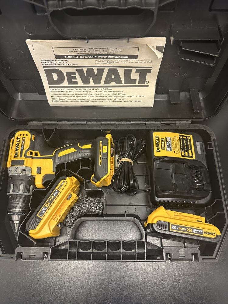 DEWALT CD791 20V MAX XR Cordless Brushless 1/2 in. Drill/Driver 2 Batteries/1 Charger in case