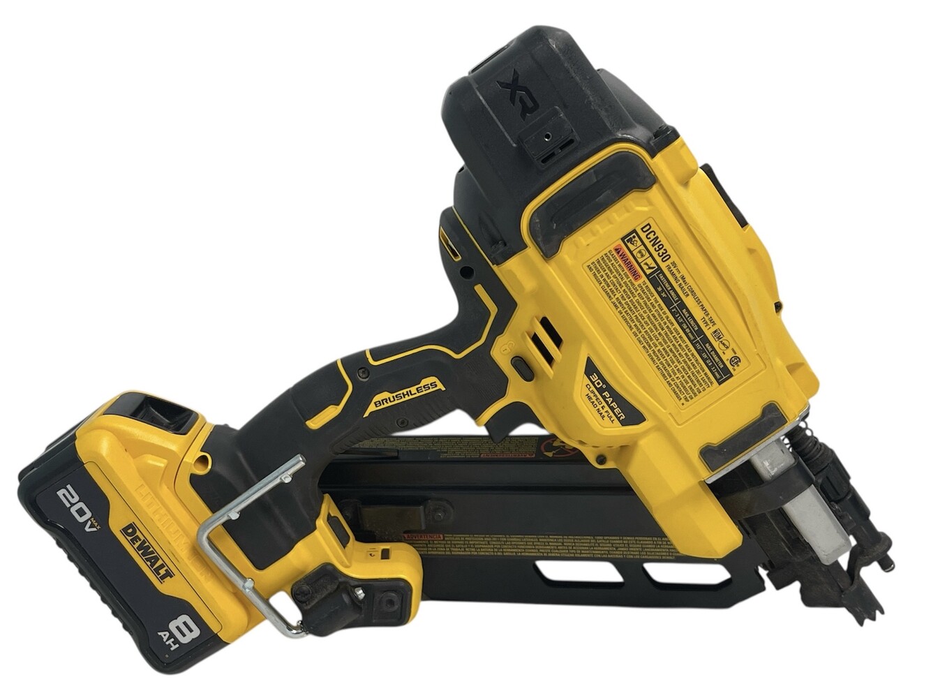 Complete a wide variety of framing jobs with the DEWALT 20V MAX* Brushless Cordless 30º Paper Collated Framing Nailer.Designed to help minimize downtime between shots with an innovative flywheel that stays active for 6 seconds after the trigger is released, this lightweight cordless nailer removes the need for hoses and compressors. Install up to 530 sq. ft. of subflooring per charge and complete up to 100 ft. of wall framing per charge† with this next-generation tool that delivers powerful performance in a wide range of applications.