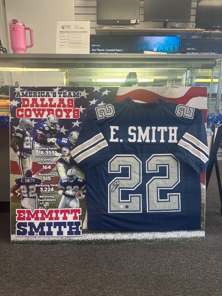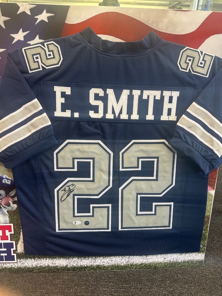Autographed Emmitt Smith Jersey with poster. Authenticated through Beckett. (WA17767) Great condition!