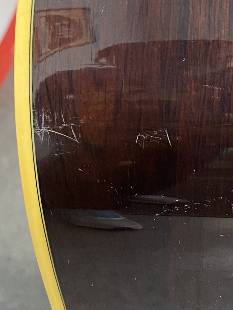 This guitar plays well. It has a few scratches and a chip in the finish. See Pictures.