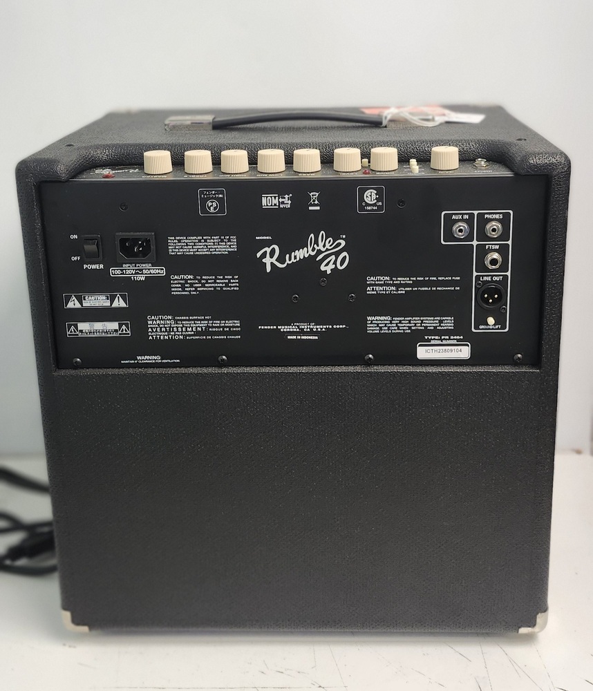 Fender Rumble 40 bass combo amplifier in basically brand-new condition. Still has the original tags attached. Tested and fully working with no issues. Very clean overall with only tiny signs of handling.