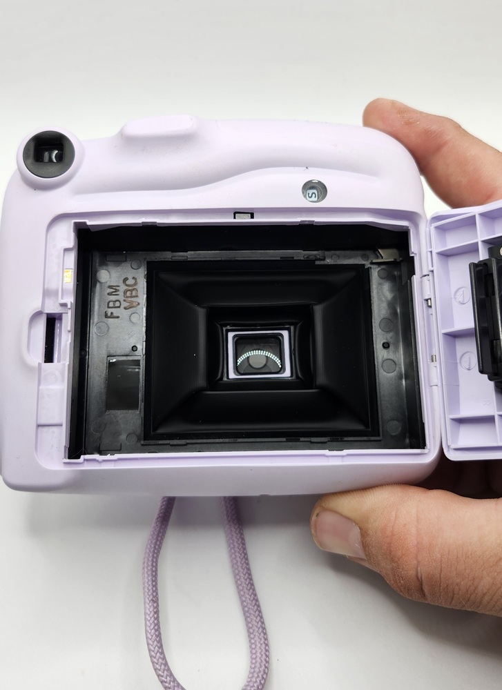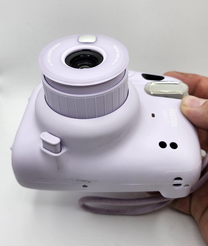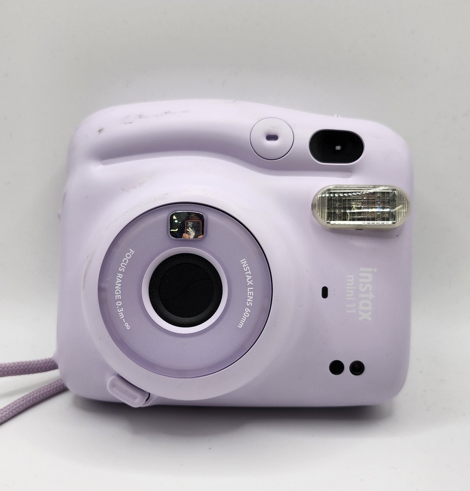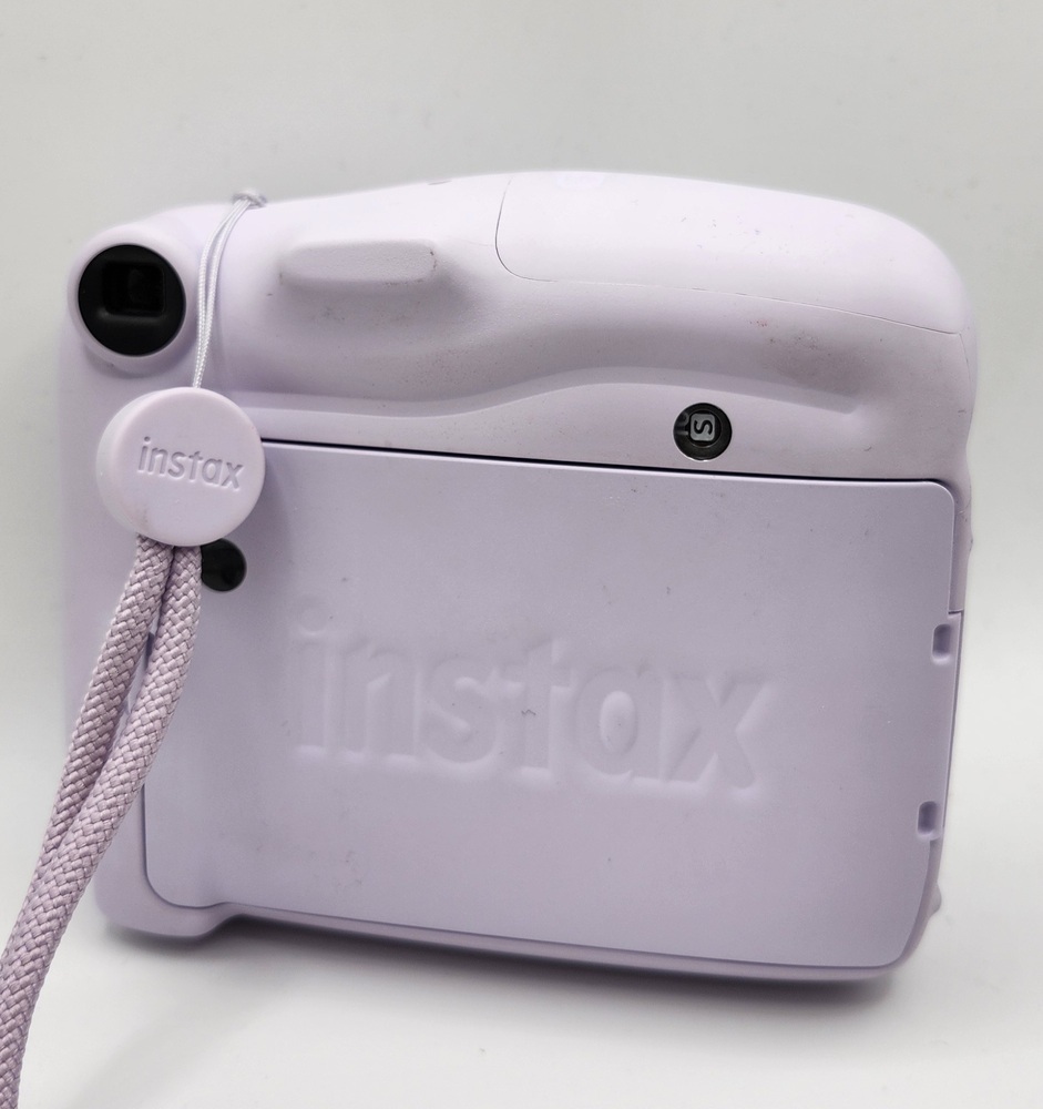 Fujifilm Instax Mini 11 instant camera in Lilac Purple color. Camera powers on, flash and lens mechanism work as expected. Some light cosmetic scuffs and signs of use (see photos). Uses Instax Mini film (not included).
