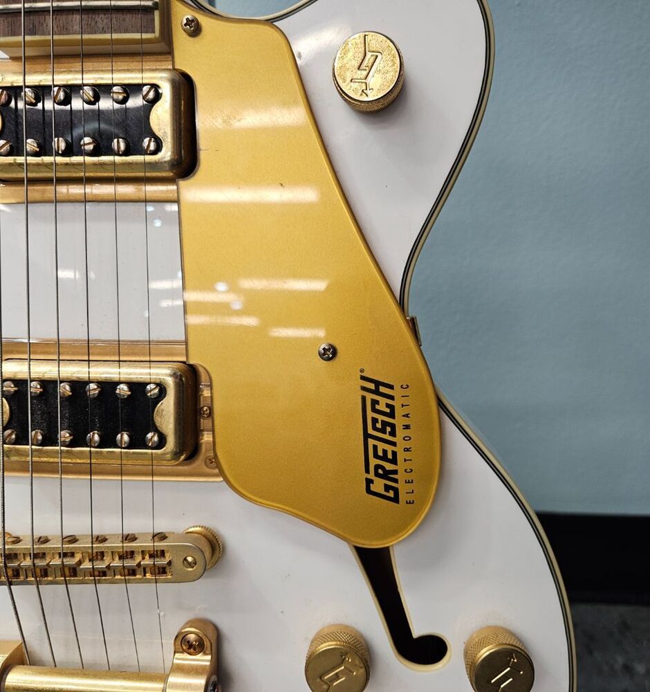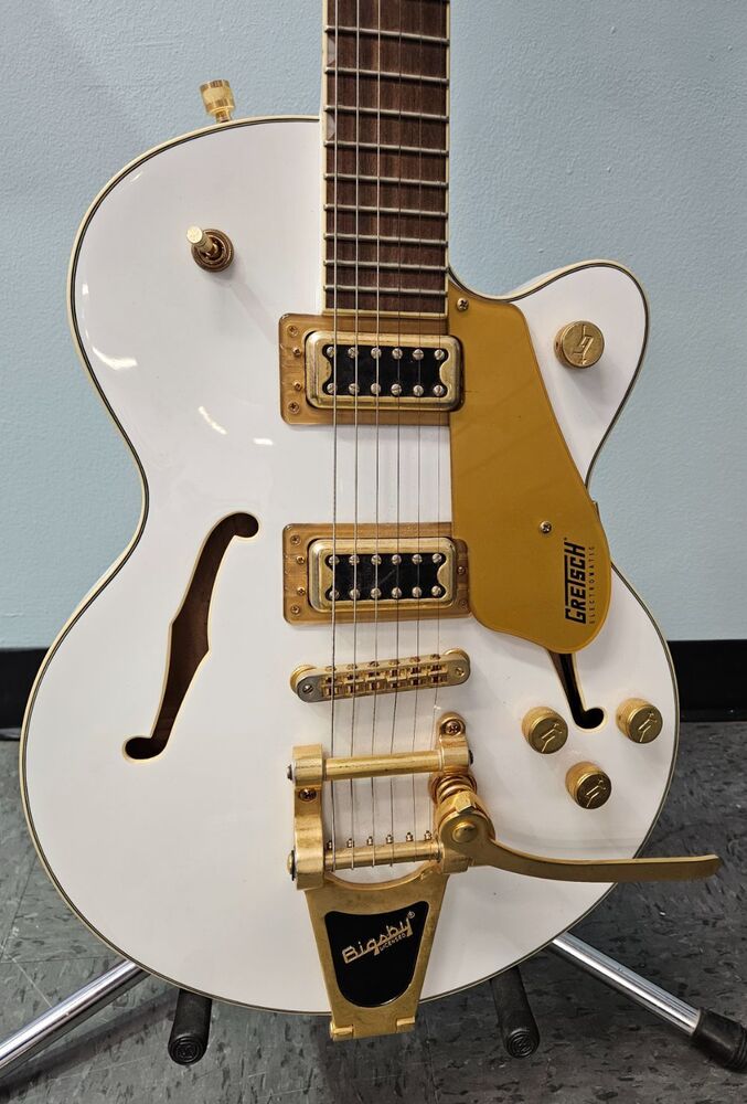 Brand / Series: Gretsch — Electromatic Model: G5420TG (Classic / Limited / Anniversary) Type: Hollow Body Electric Guitar Finish / Color: &white & Gold, Two-Tone In goood condition please look at pictures to see condition.