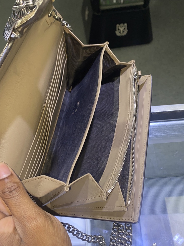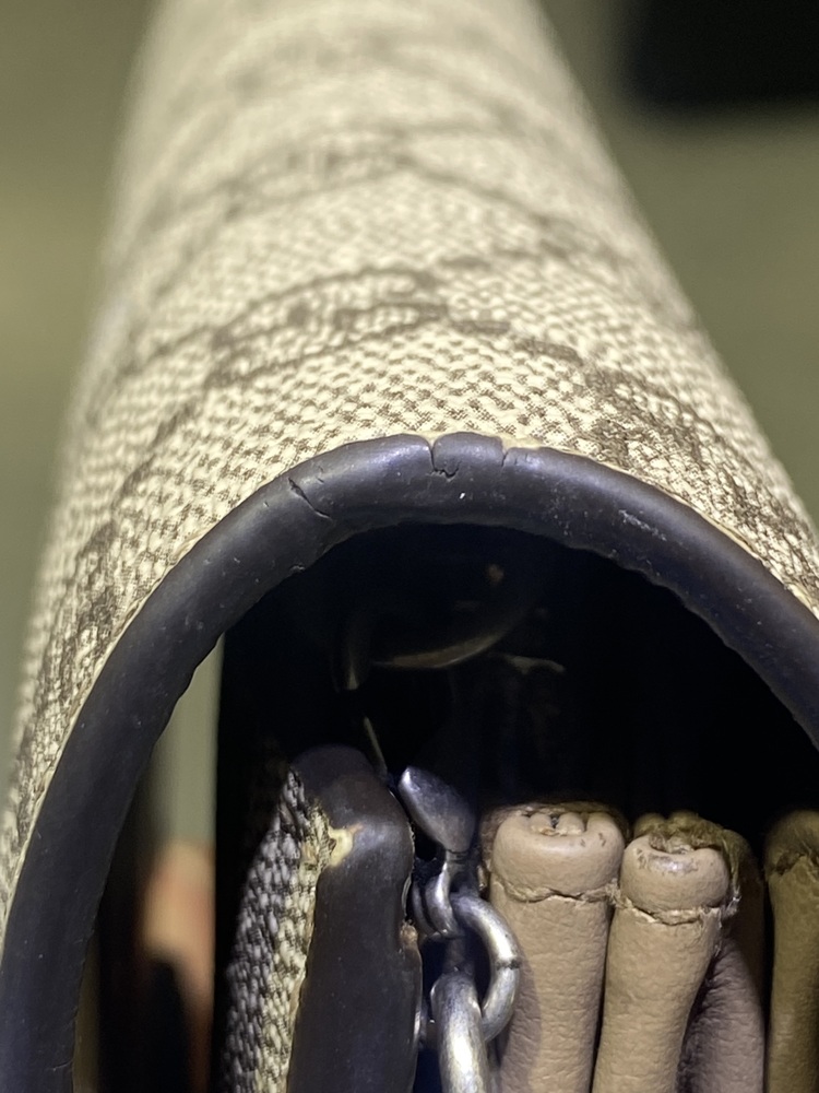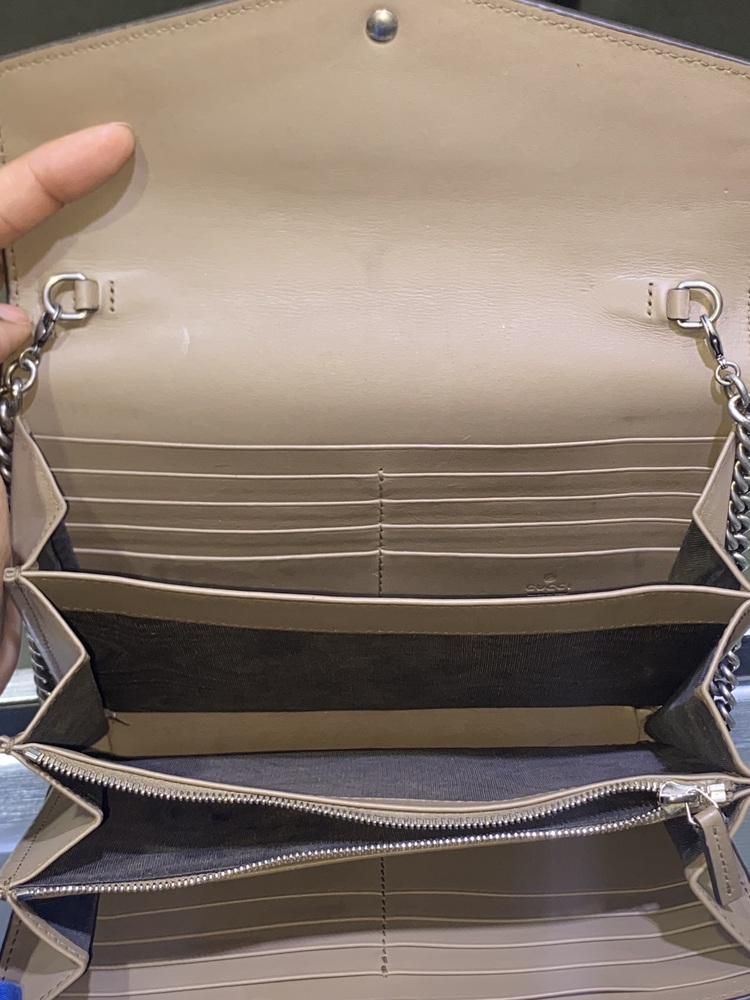 This wallet is in great condition. There are no major rips scratches or signs of wear. There are few light scratches and a few marks on the outside. SEE PICTURES