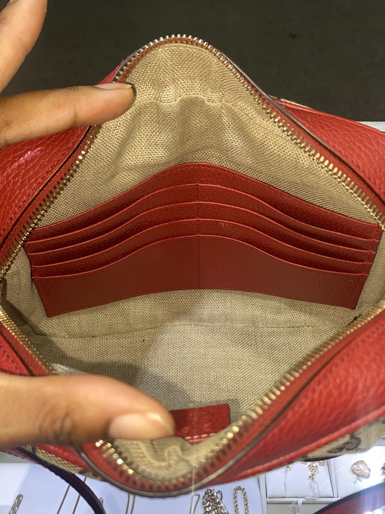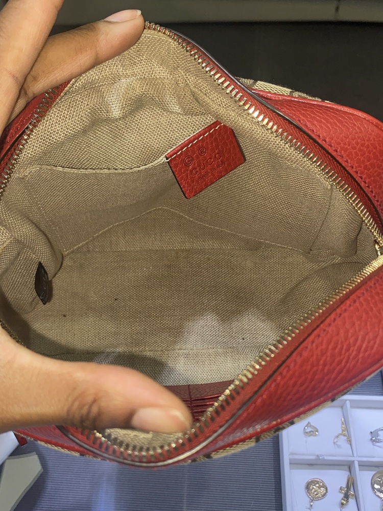 This Gucci crossbody is in excellent condition. It is very clean on the inside and it does not hav any scratches or knicks in the leather. This item has been authenticated by entrupy.