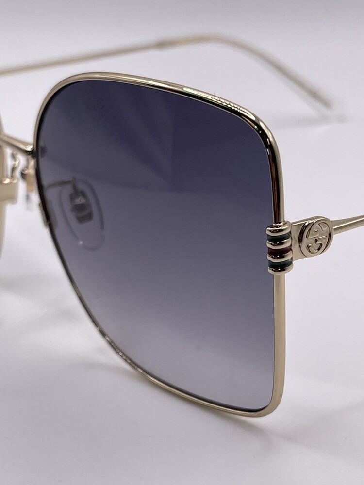 Unleash your inner style diva with Gucci's oversized square sunglasses. Exuding sophistication, these metallic marvels are for the modern woman who embraces glamour and dares to be the spotlight. Blend of comfort, durability and fashion; these Gucci shades aren't merely vision protectors but a style statement.