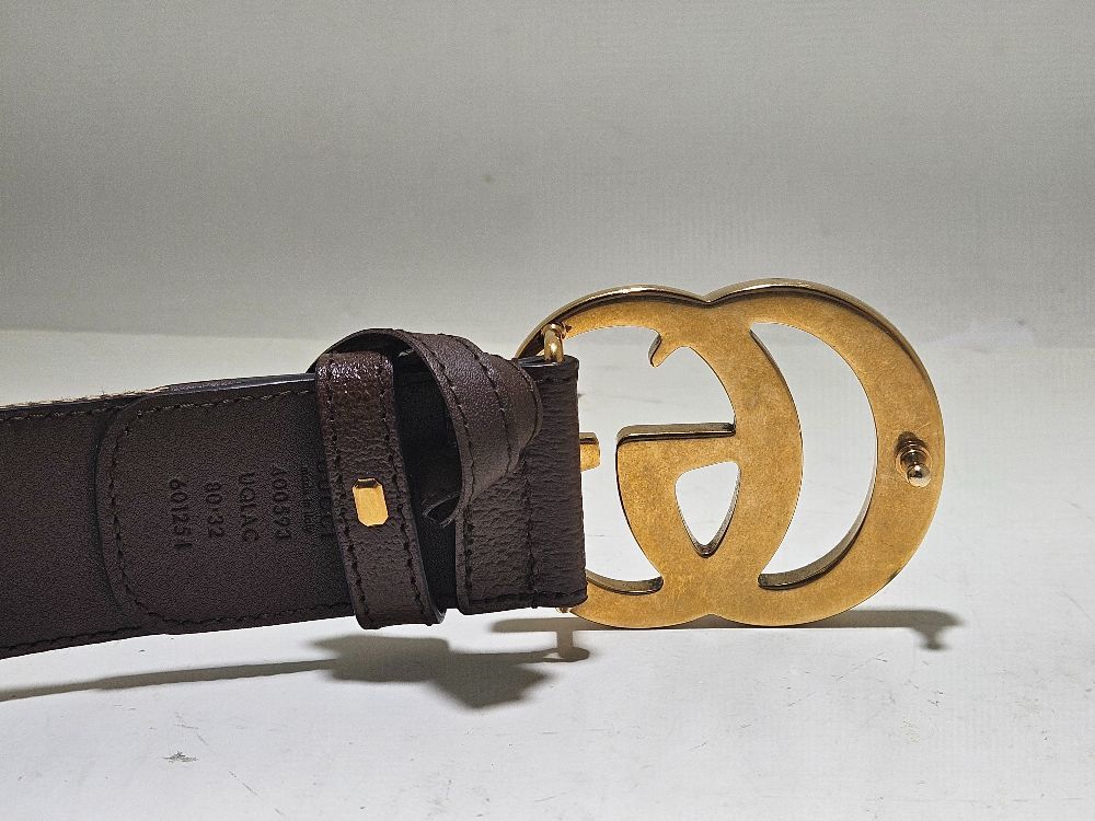 For sale is a Gucci GG Marmont jumbo wide belt with a double G buckle. The belt (code #601254 400593 UQLAC 80-32) is in good condition, with no noticeable heavy creases or tears to belt or sizing holes. The buckle shows very light signs of use. Comes with original box and dust bag, though the box shows wear and tear. |