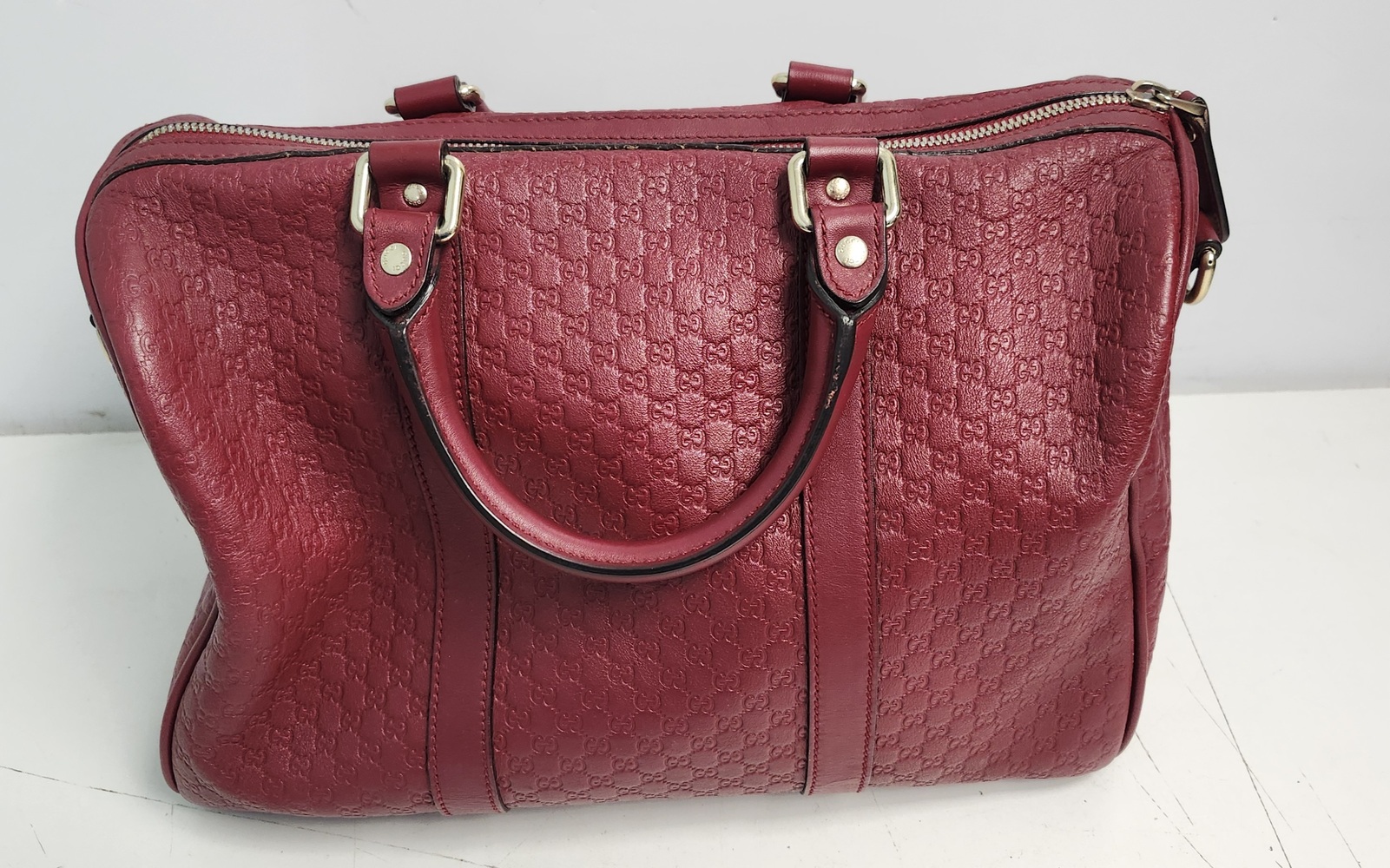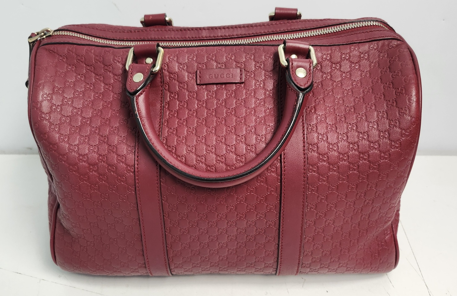 Authentic Gucci Microguccissima Boston Bag in beautiful Bordeaux (deep red) leather.