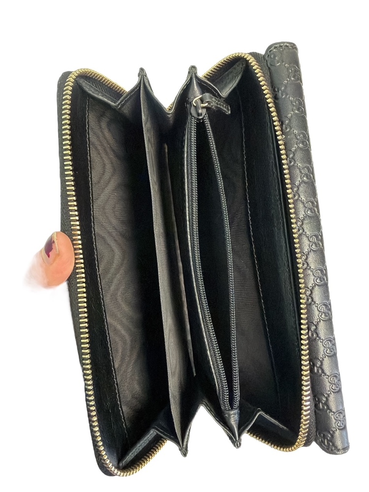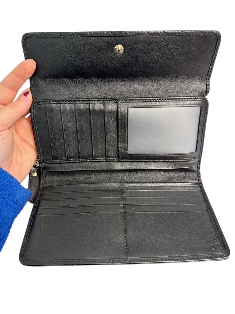 Please note: This wallet was an outlet item, marked by a circular G stamp on the interior label.