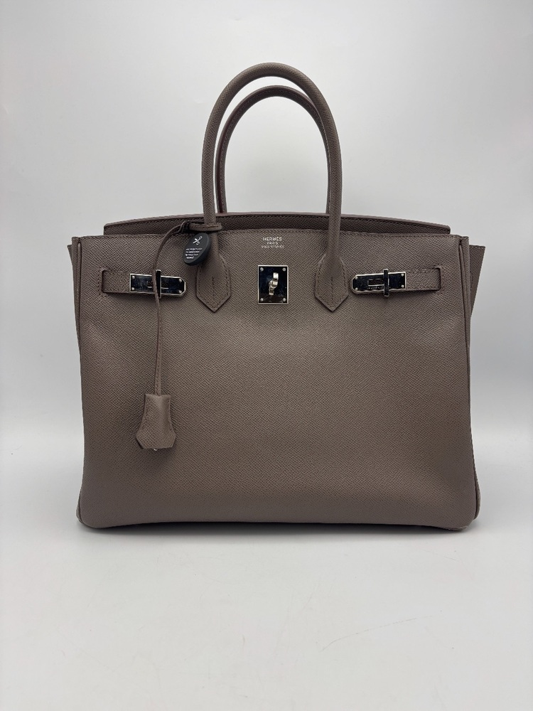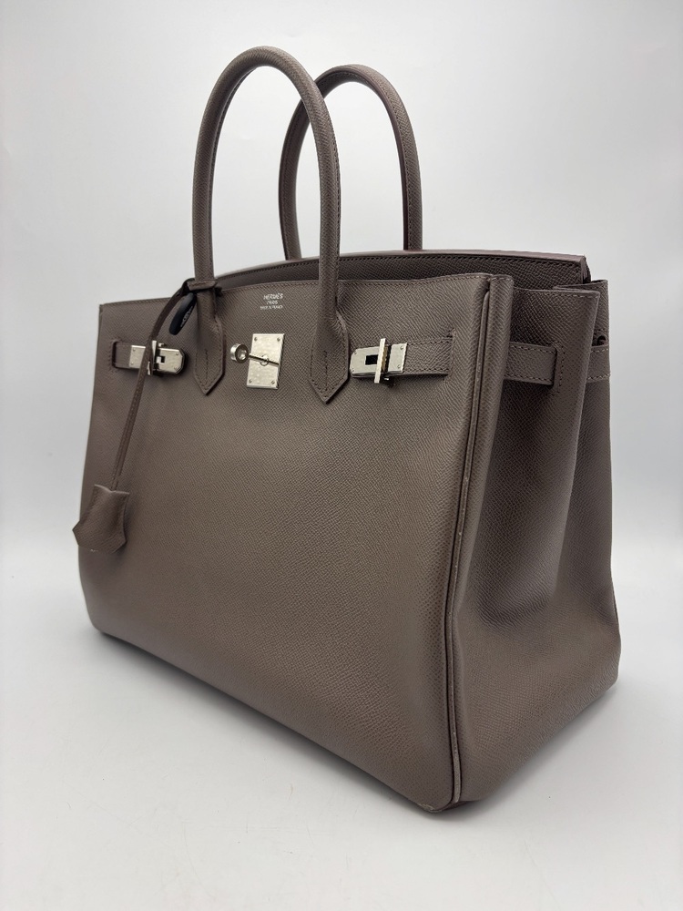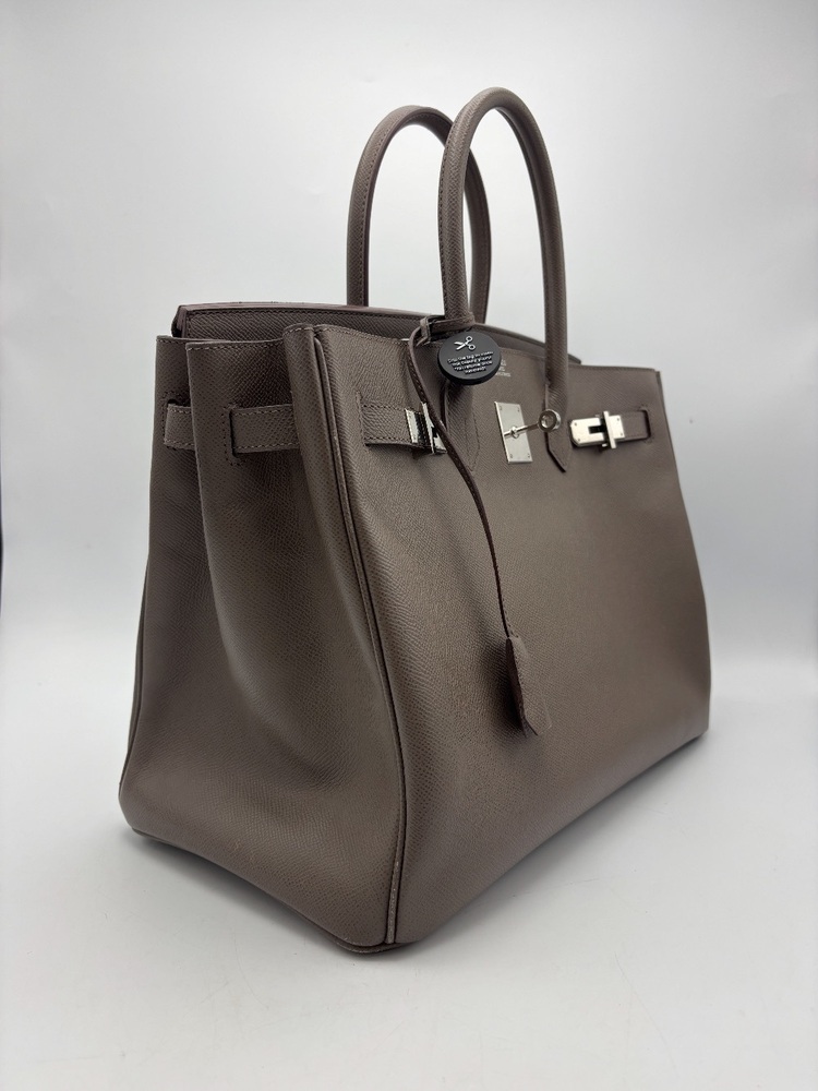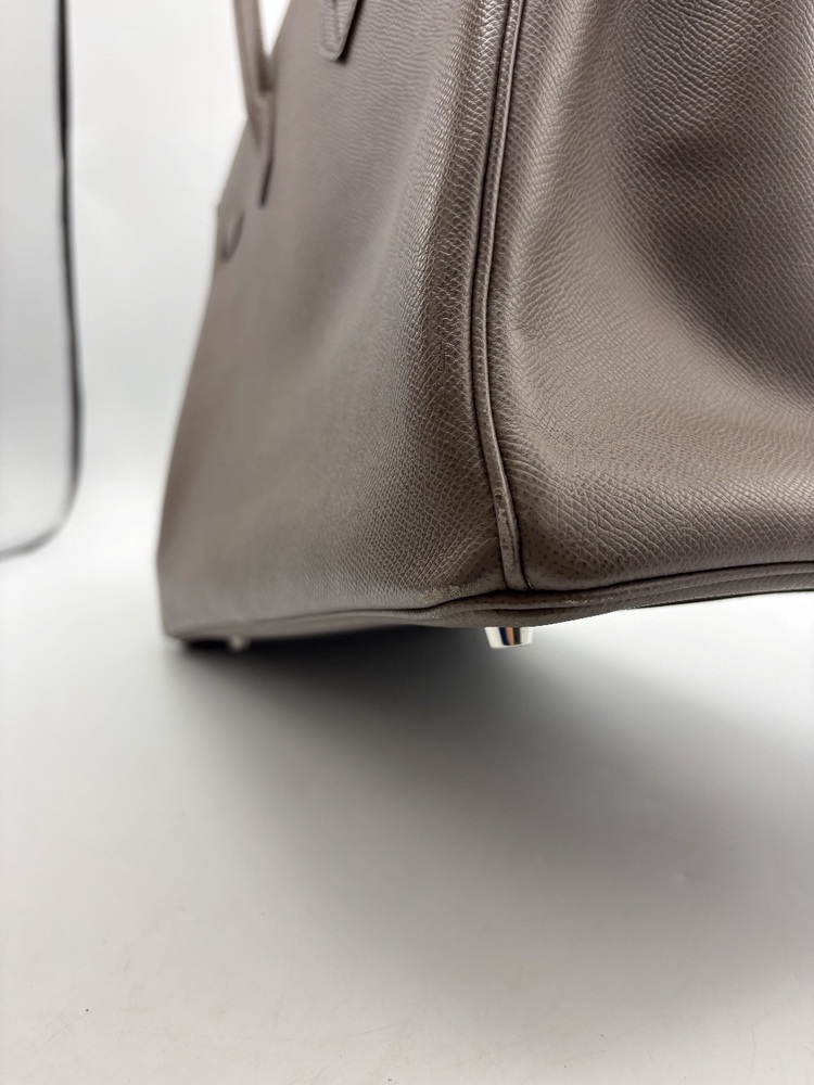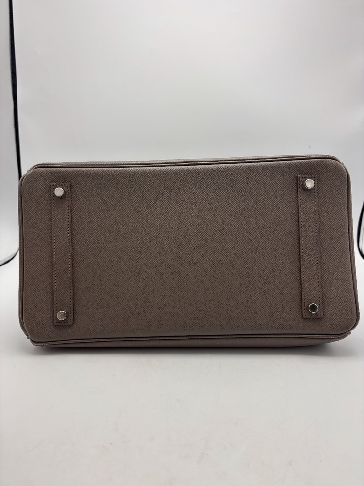 The elusive Birkin bag from Hermès was designed after then-artistic director, Jean-Louis Dumas, was sat next to Jane Birkin on a flight from Paris to London and the pair discussed the perfect weekend bag. Constructed with a trapeze silhouette, the structured top-handle accessory sits atop metal feet. Comes with dustbag and papers. No original box.