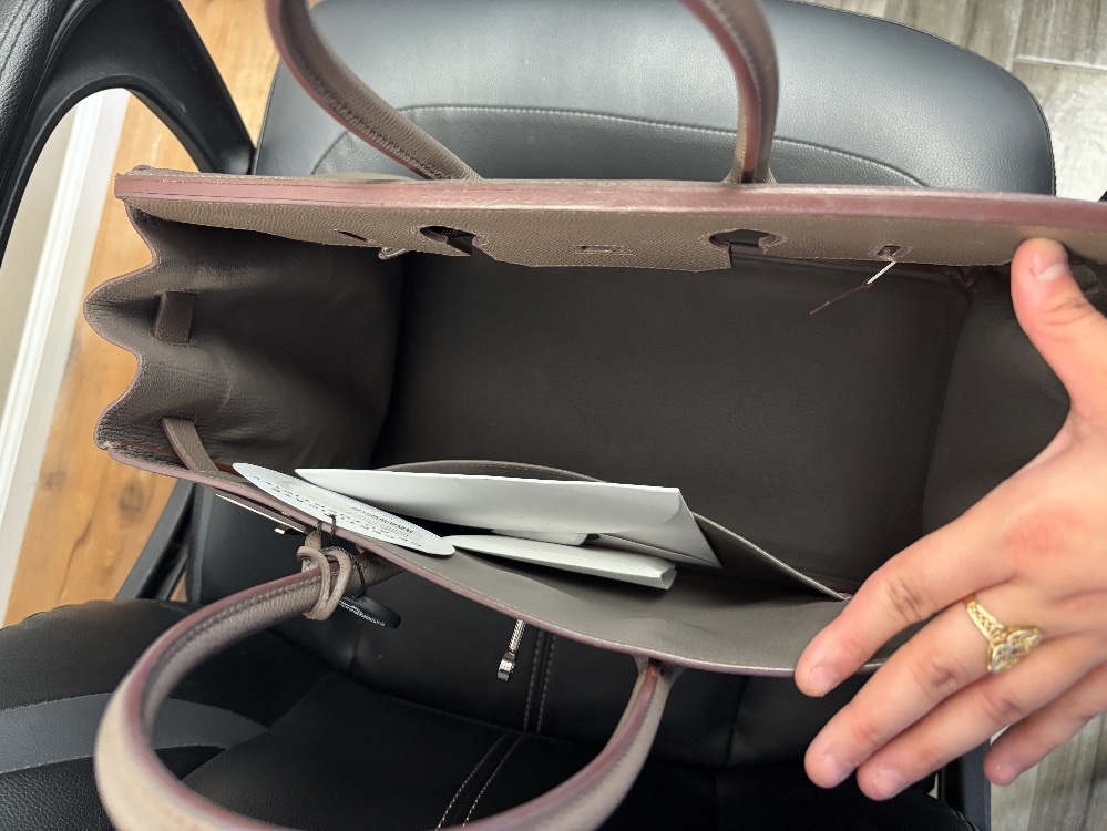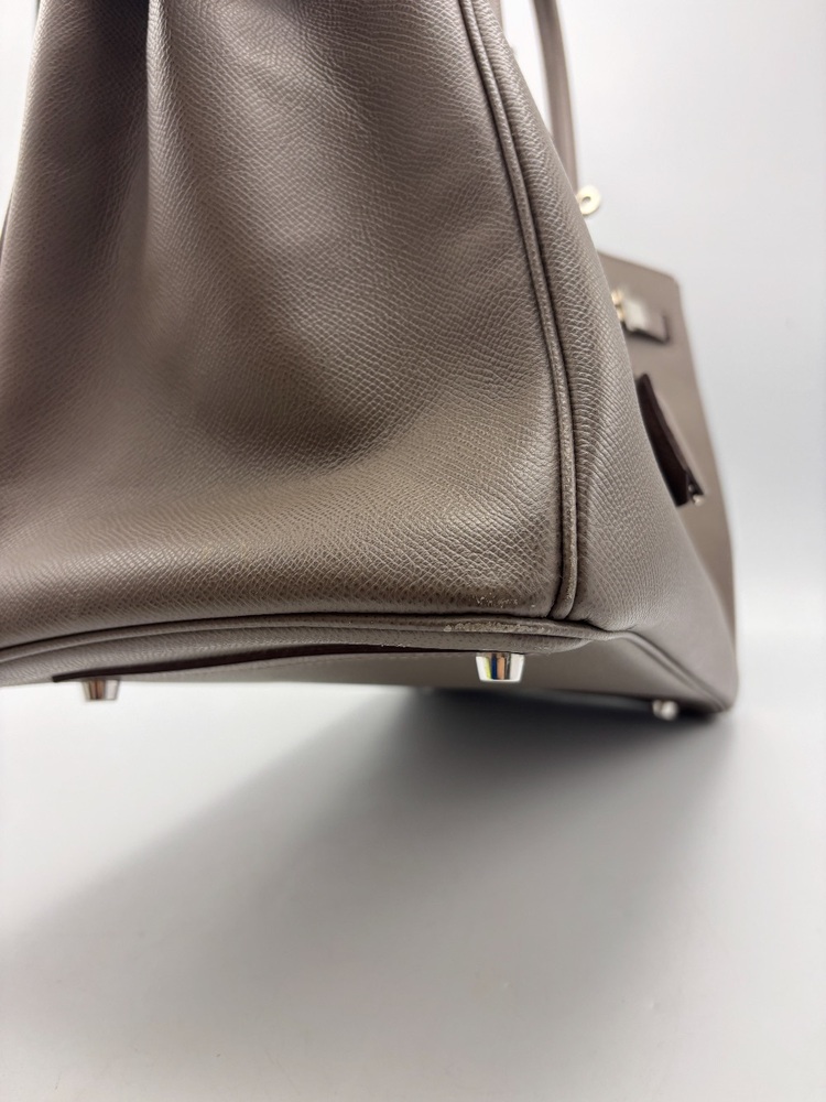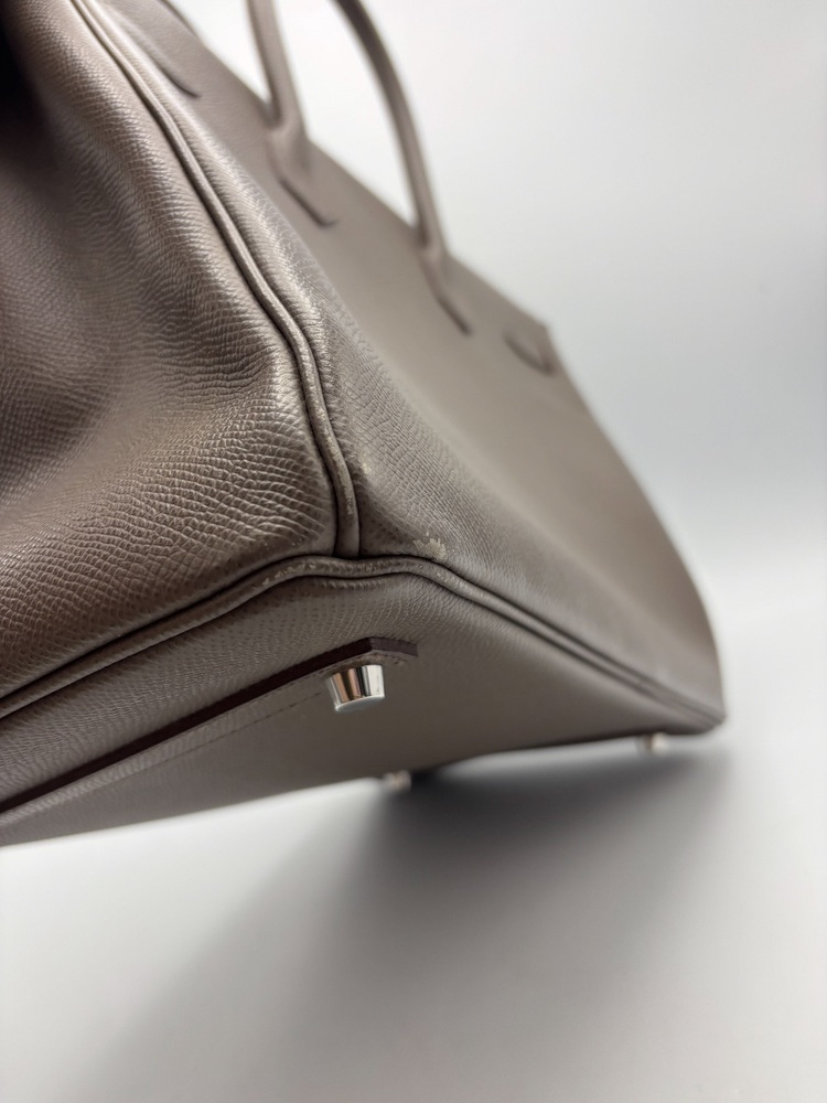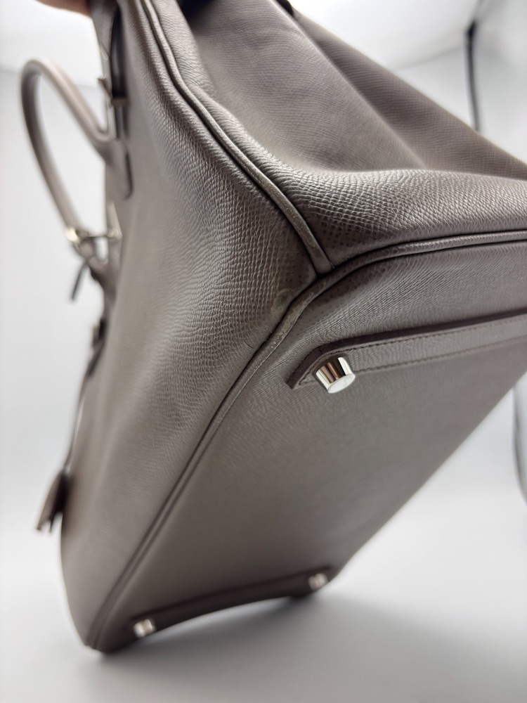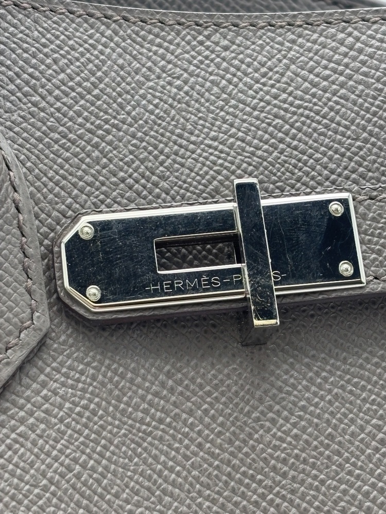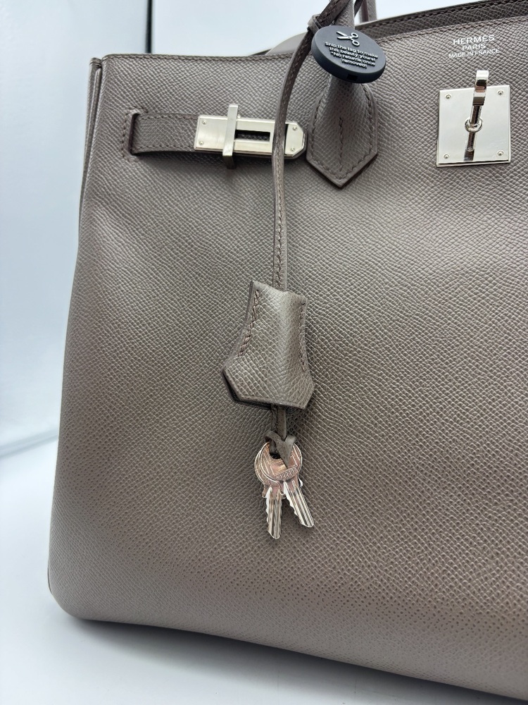 The elusive Birkin bag from Hermès was designed after then-artistic director, Jean-Louis Dumas, was sat next to Jane Birkin on a flight from Paris to London and the pair discussed the perfect weekend bag. Constructed with a trapeze silhouette, the structured top-handle accessory sits atop metal feet. Comes with dustbag and papers. No original box.