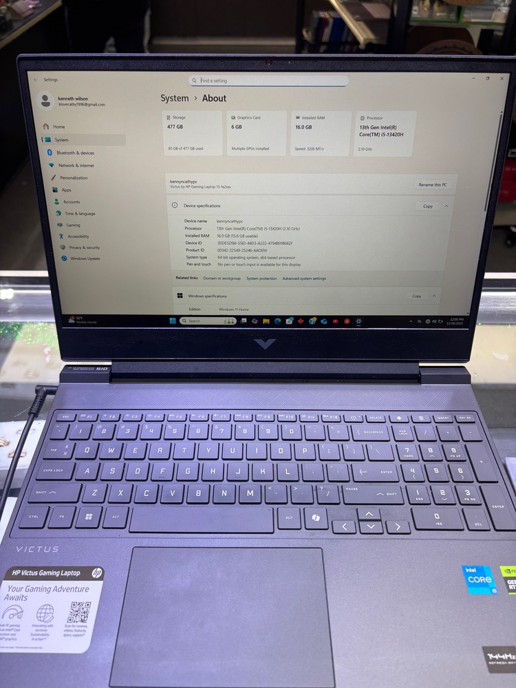 HP 15-fa2082wm Victus i5-13420H 2.1GHz NVIDIA GeForce RTX 4050 16G Ram 512gb SSD