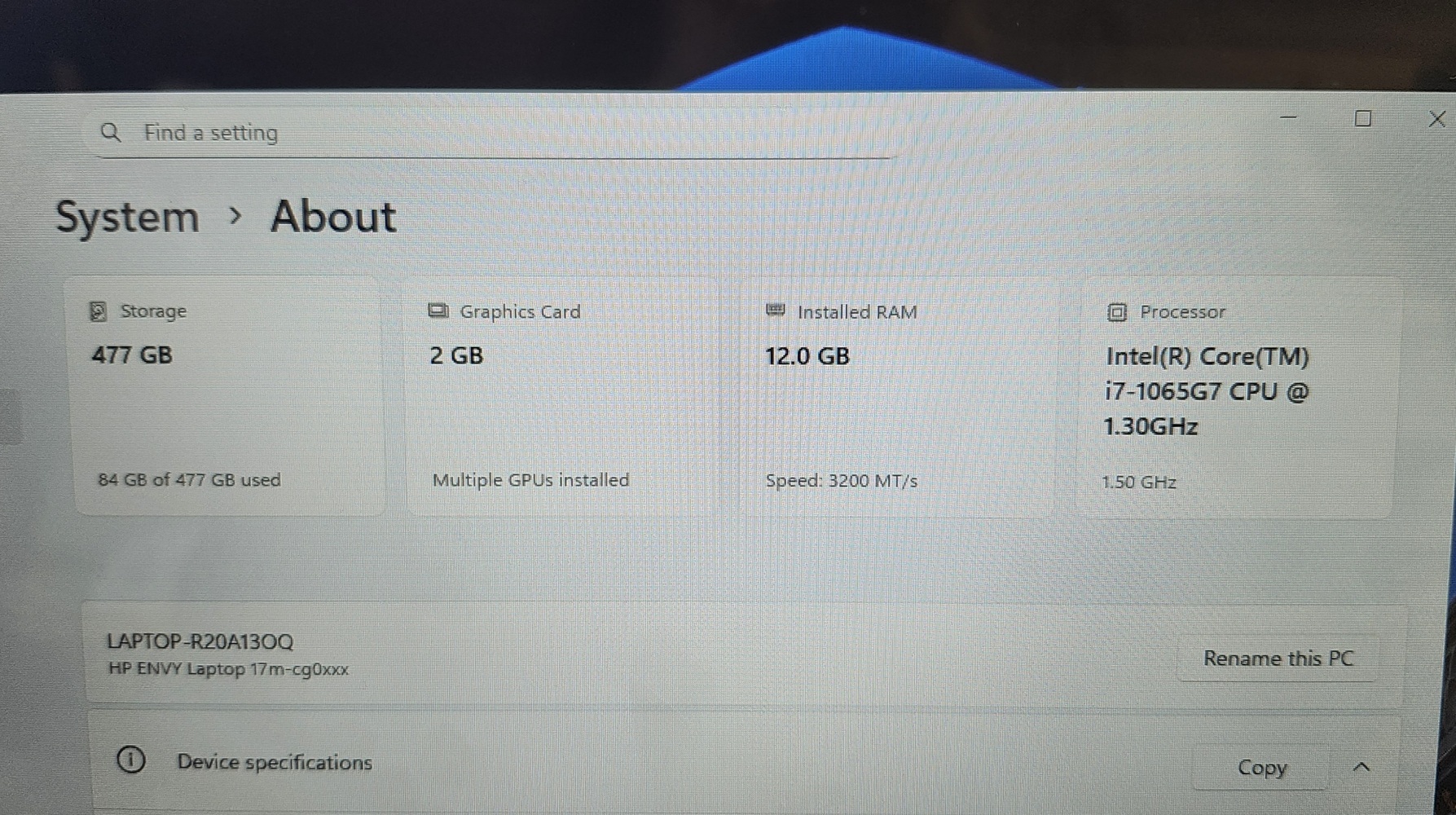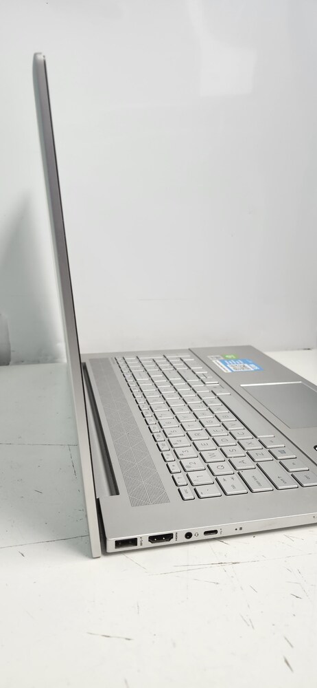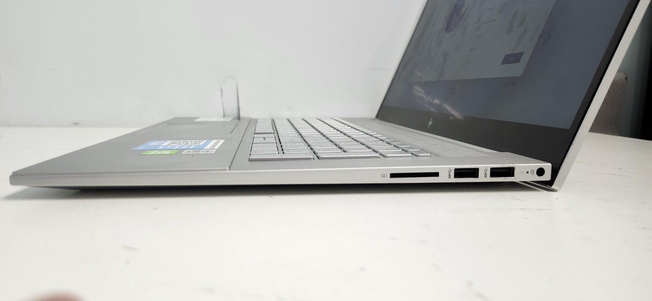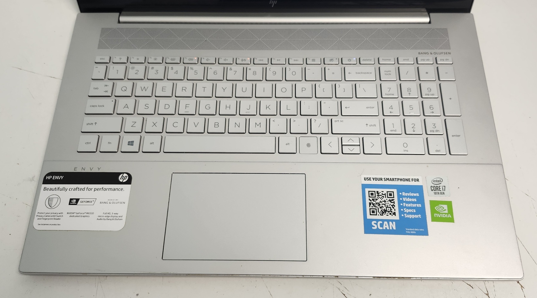 HP Envy 17-inch laptop featuring a 10th Gen Intel Core i7 processor, 12GB RAM, and fast 512GB SSD storage. Large touchscreen display with dedicated NVIDIA GeForce MX330 graphics. System has been reset and is currently at the Windows setup screen.
