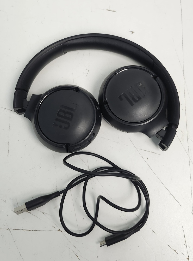 These are JBL Tune 510BT wireless on-ear Bluetooth headphones in black. They’re tested and working properly. Sound is clear, buttons respond, and Bluetooth connects with no issues. The earpads show light wear from normal use.