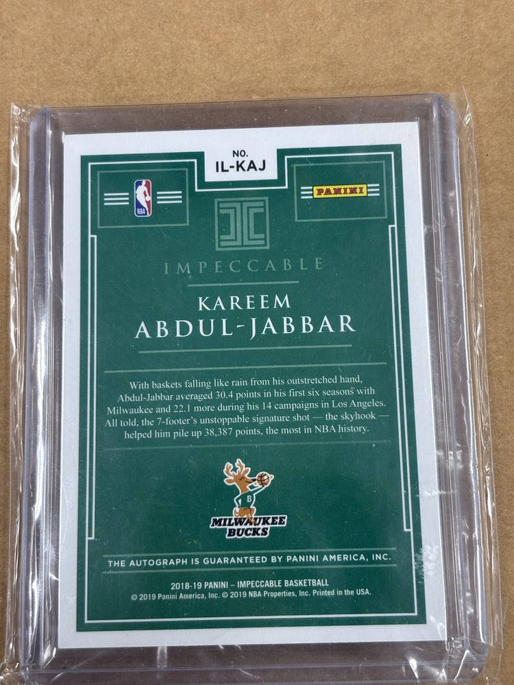 Kareem Abdul-Jabbar 2018-19 Panini Impeccable Illustrious Ink Auto Milwaukee Bucks #13/15 Rare Limited Edition
