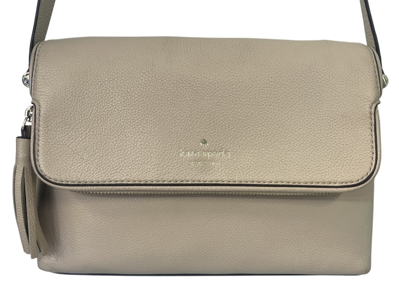 Let elegance drape across your shoulder with the Kate Spade Flap Zipper Crossbody Bag. This fashion essential embodies sophistication and practicality, with its chic design and ample space. Perfect to stash essentials, it'll take you from dawn to dusk in effortless style. Elevate your accessory game with this chic companion.