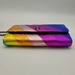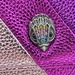 The interior features a secure snap closure, zip pocket, and card slots — super handy for nights out, concerts, festivals, or whenever you want something lightweight but fabulous. The leather has that signature pebbled metallic finish, and the colors shift beautifully in the light.